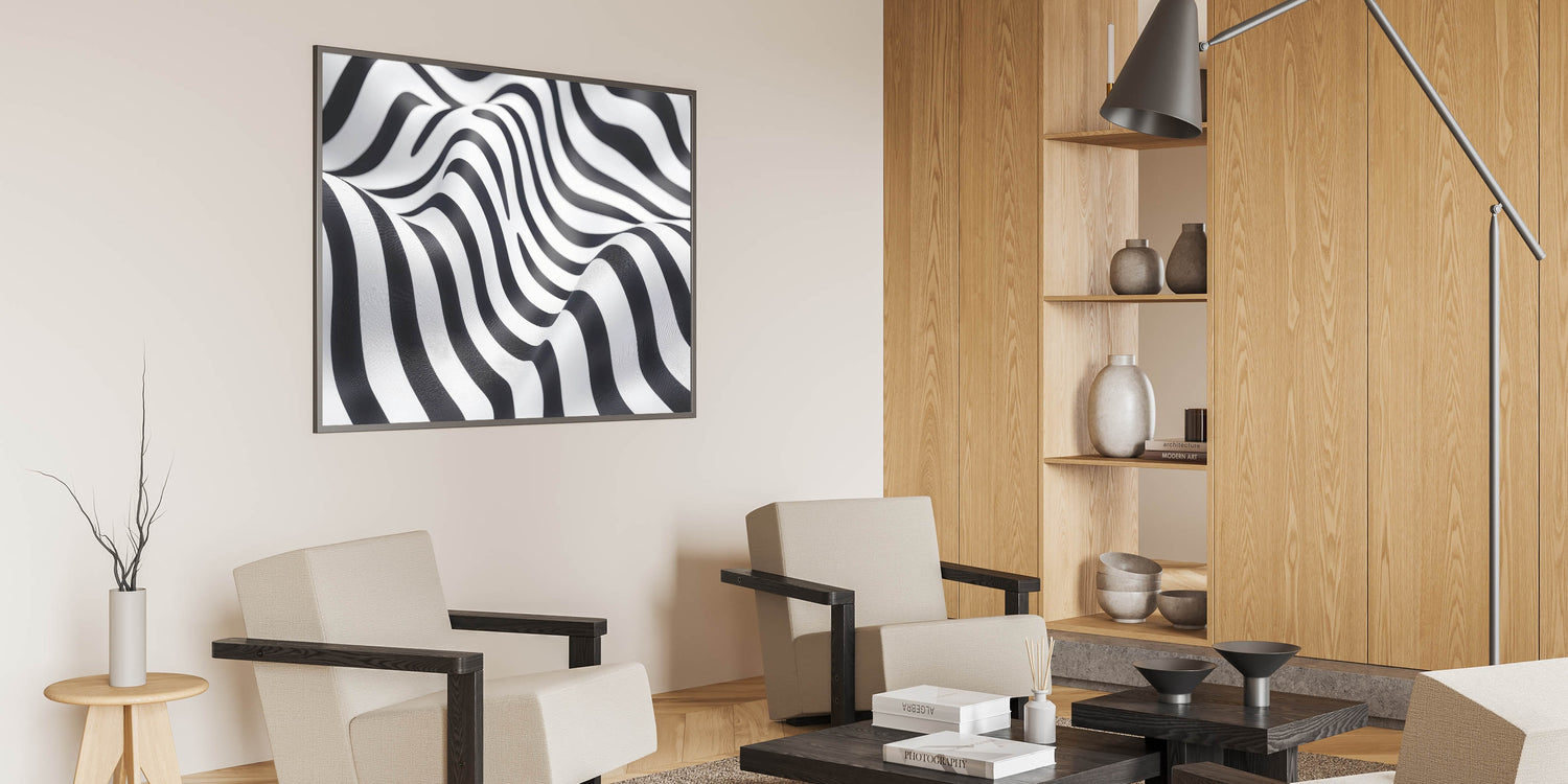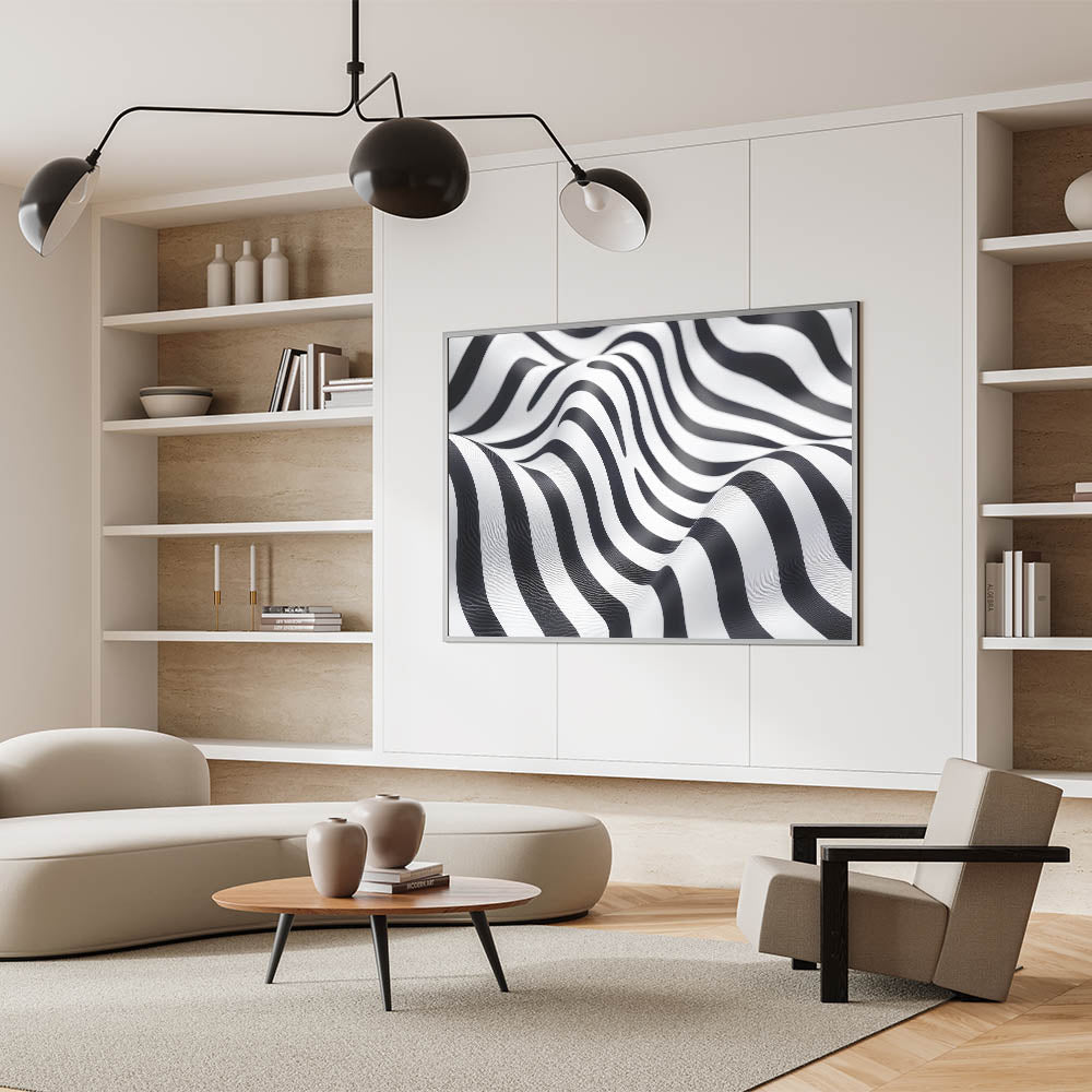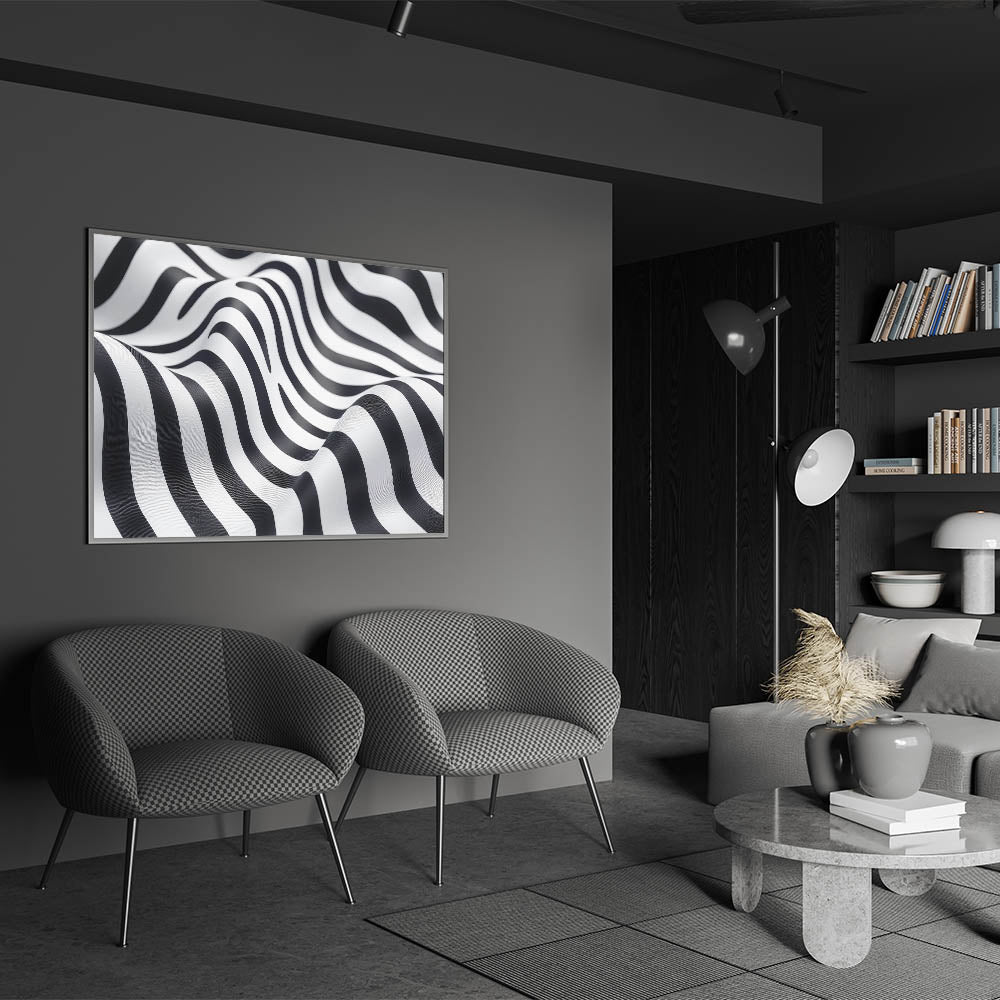 Step into visual rhythm with this bold abstract wall art from our High-Contrast Abstracts collection. Featuring undulating black and white waves, this piece brings energy and motion to any space. The crisp contrast and hypnotic flow create a modern illusion that instantly draws the eye.