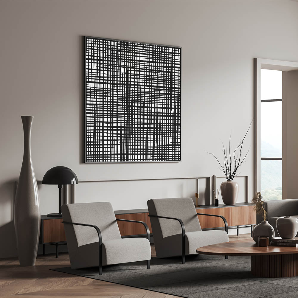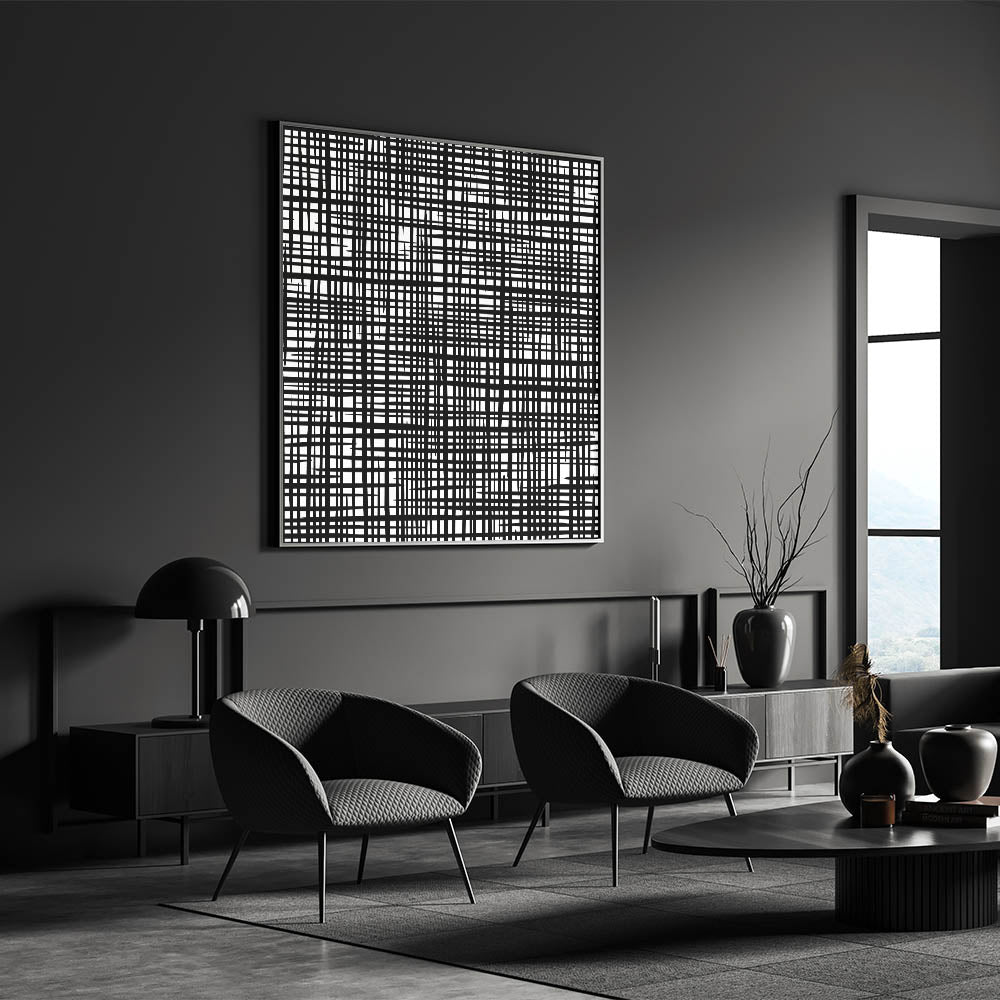 Bring structure and edge to your walls with our Geometric Abstract Canvas Artworks. This modern piece features bold black gridlines layered over a crisp white background—offering high contrast, linear rhythm, and powerful visual movement. Perfect for minimalist and industrial interiors, it makes a bold, architectural statement.