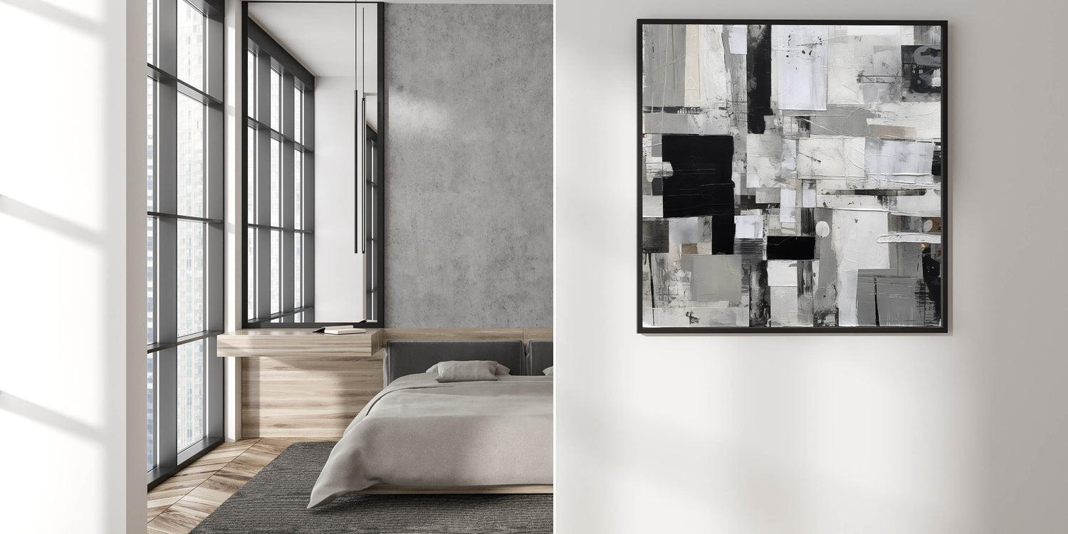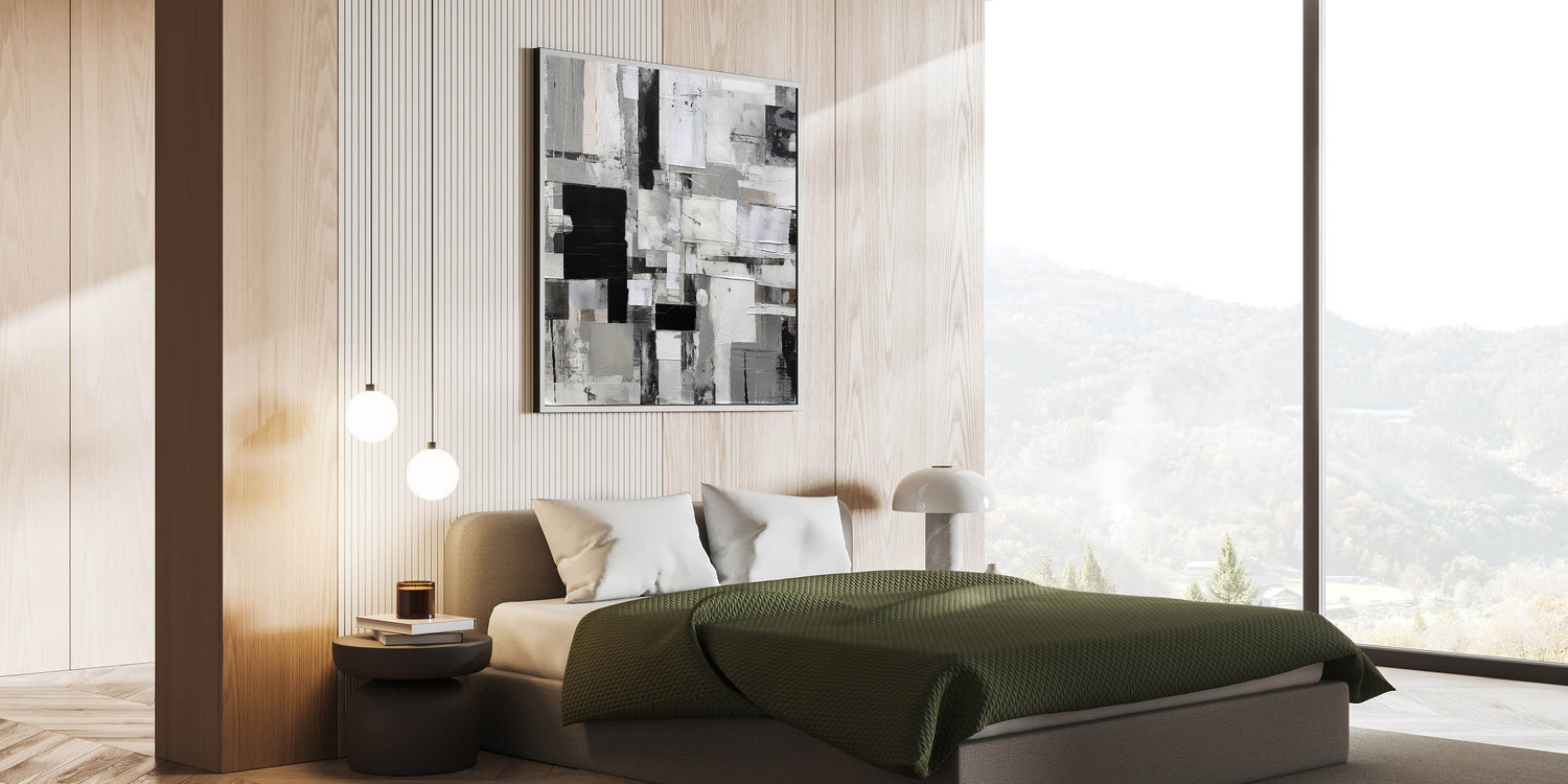 - Modern art pieces for bedroom decor that add structure and sophistication