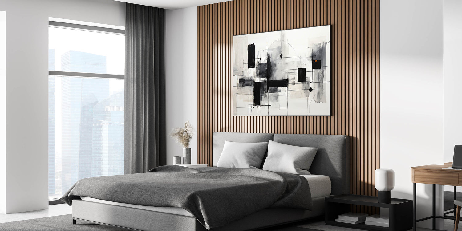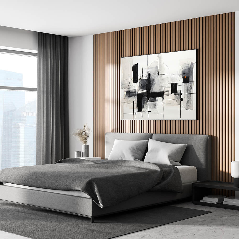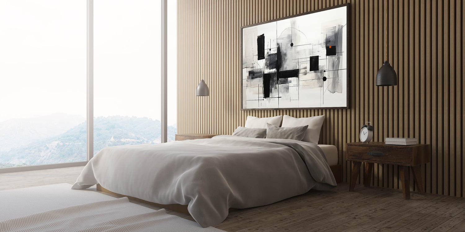 Geometric Black & White Abstract Bedroom Wall Art – Canvas & Prints