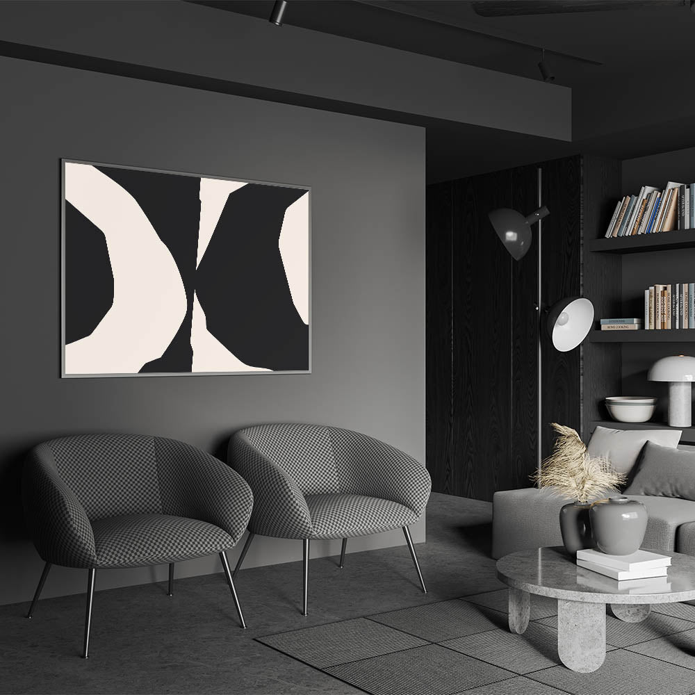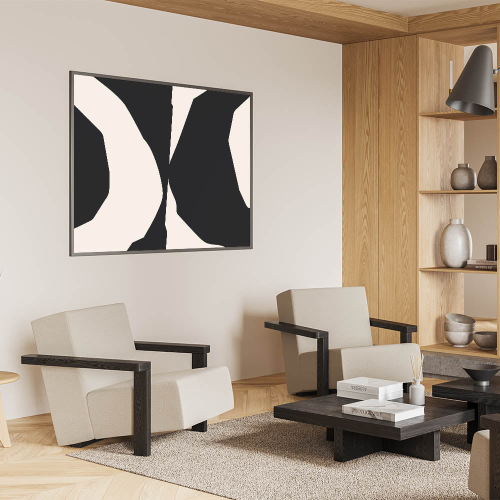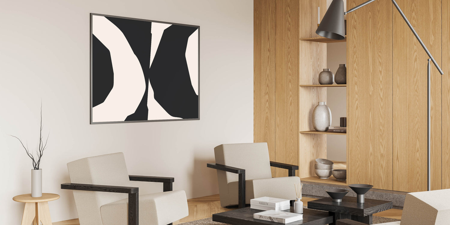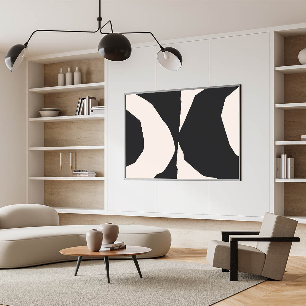 Geometric Minimalist Abstract Wall Art – Black and Cream Contrast