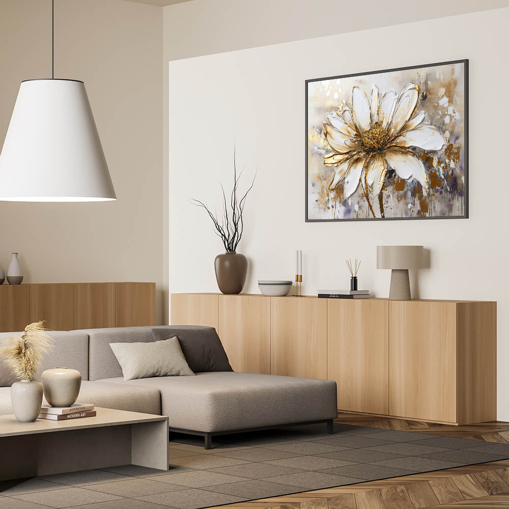 Golden White Daisy – Modern Floral Wall Art for Living Room