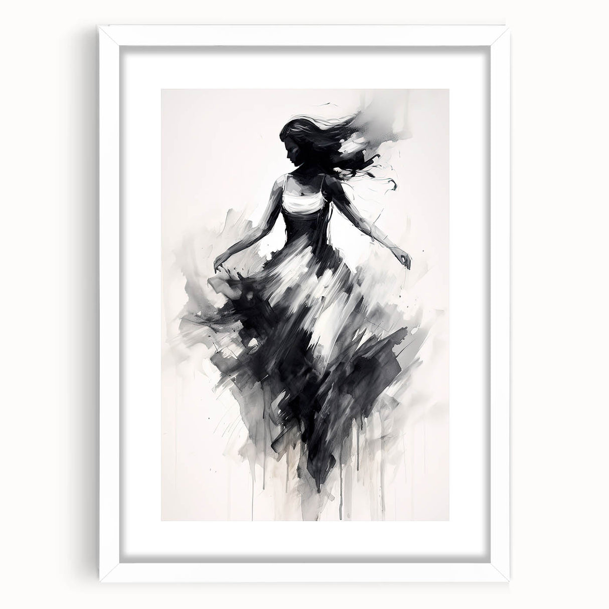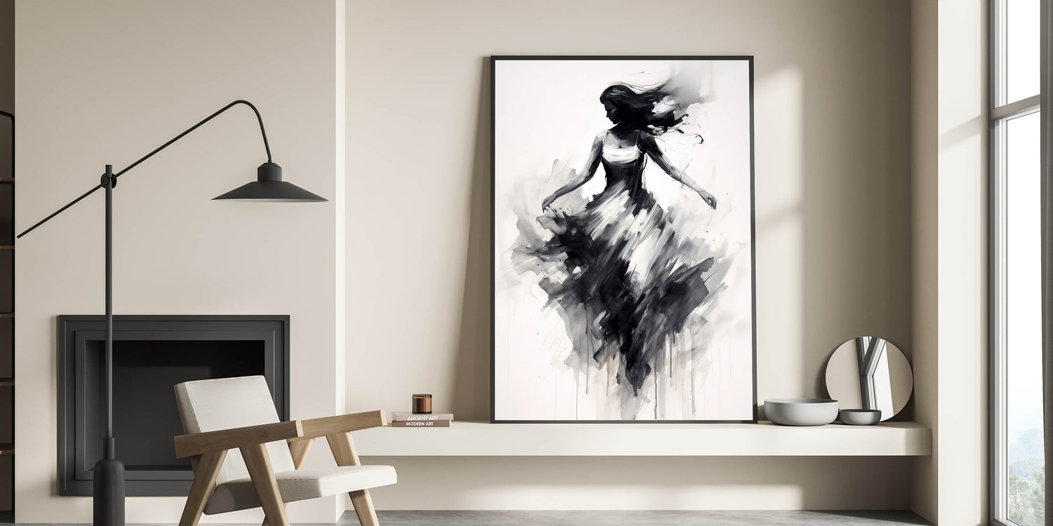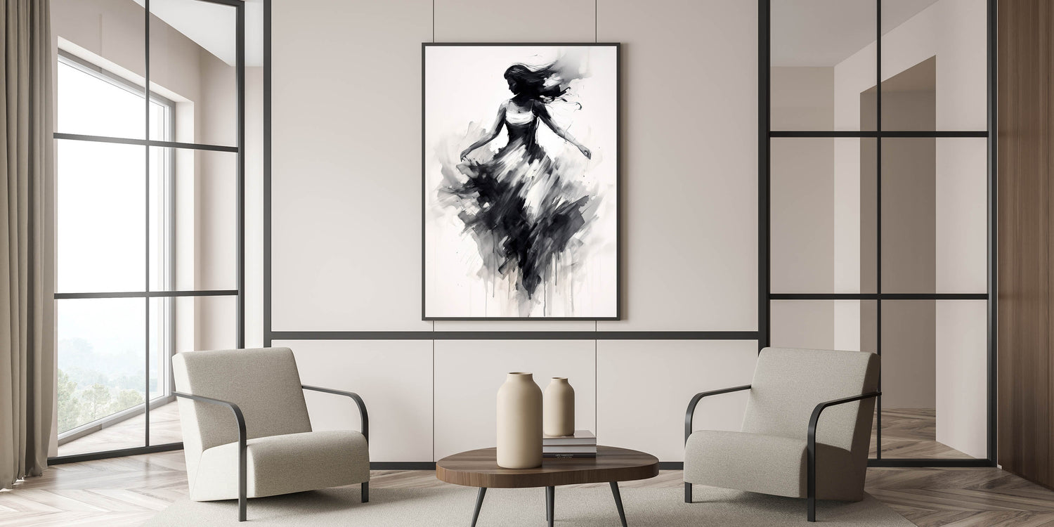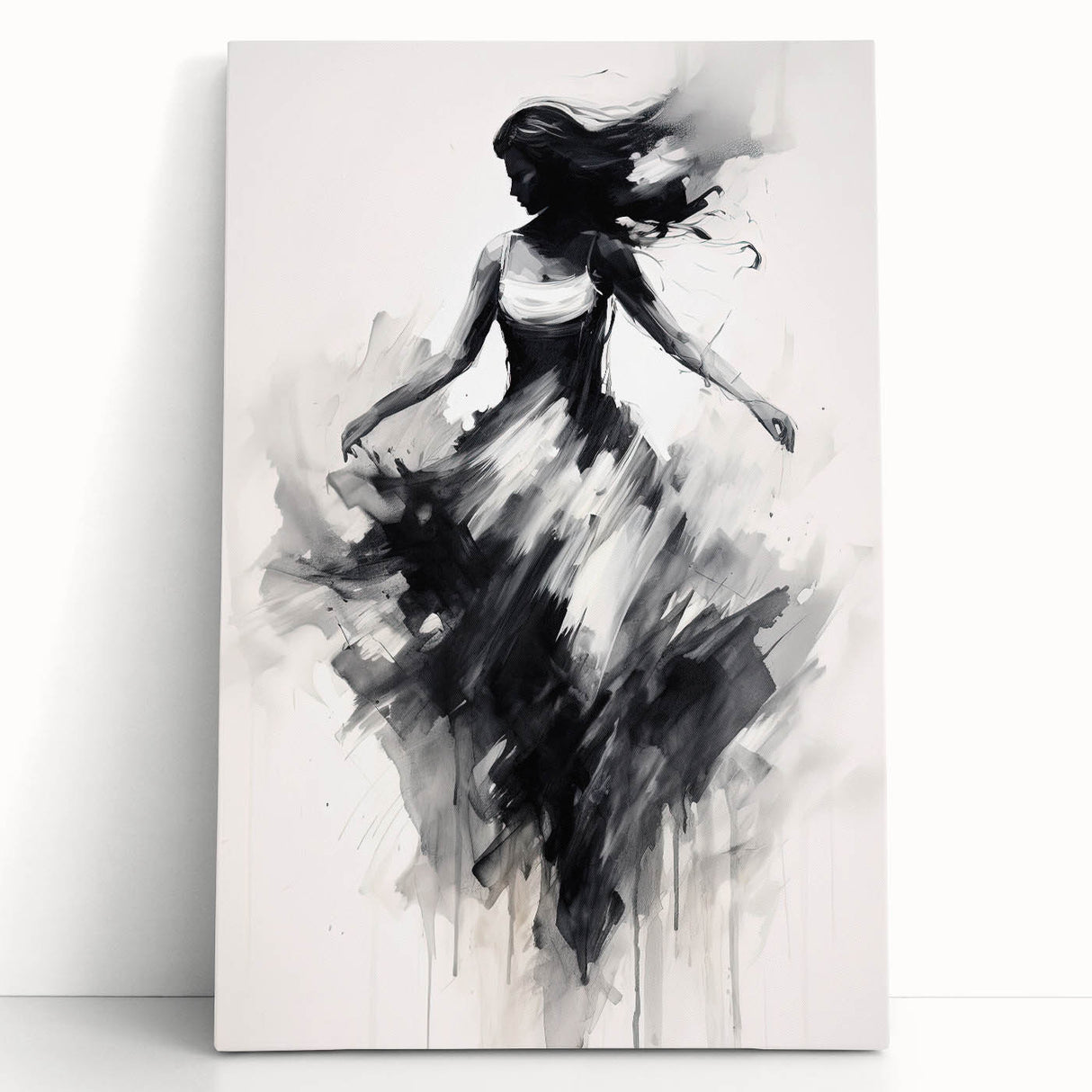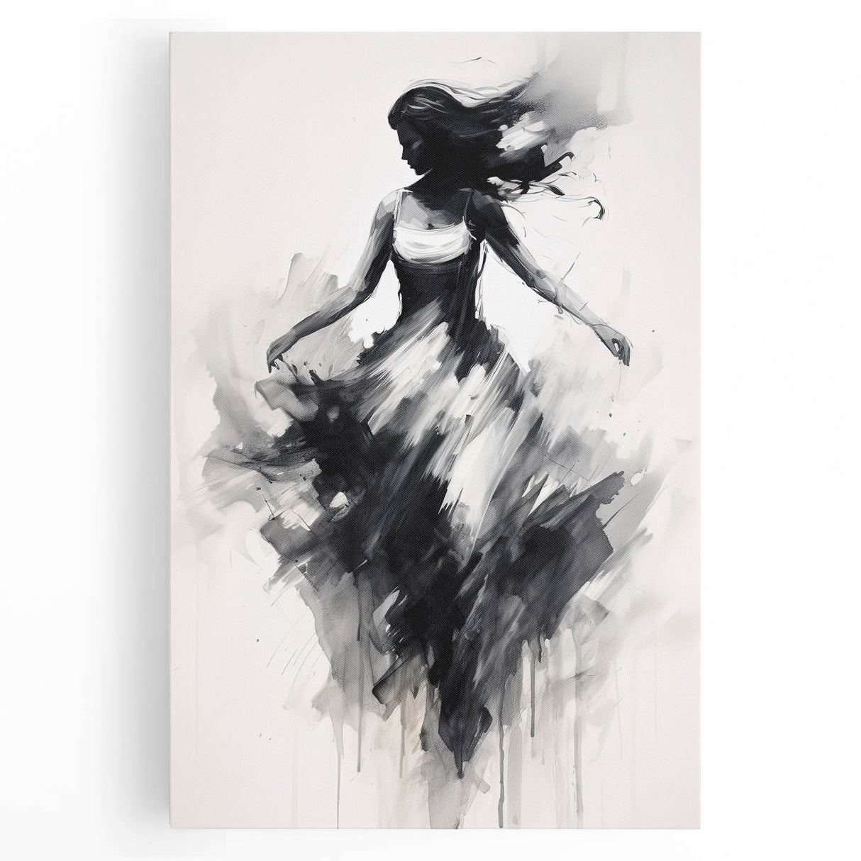 Bring movement and elegance to your space with this Living Room Wall Art, featuring a stunning abstract portrayal of a woman in motion. The fluid black and white brushstrokes create a captivating contrast, blending grace and artistic expression. This bold yet delicate piece is ideal for Modern Living Room Decor, adding a sophisticated touch to any space.