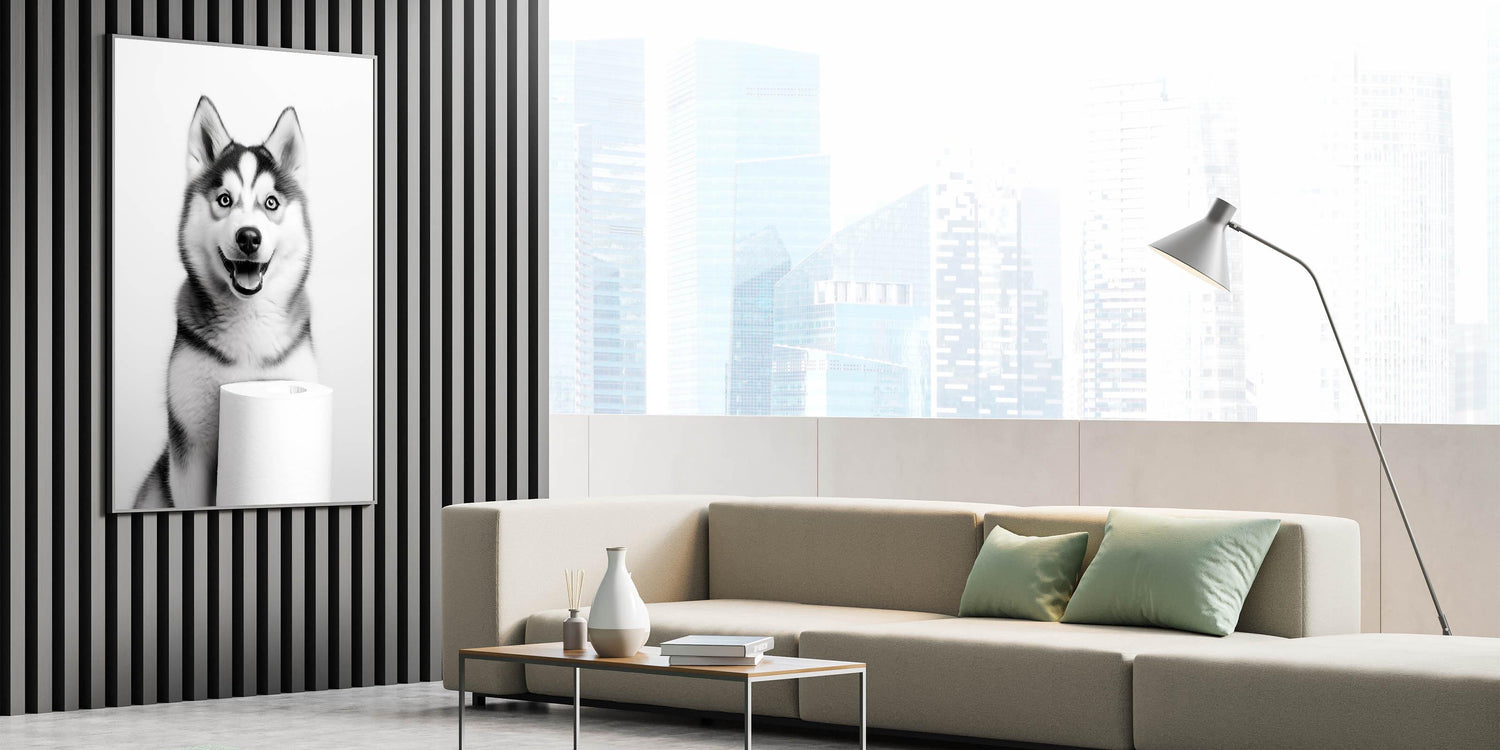 Husky Bathroom Wall Art - Minimalist Black and White Decor