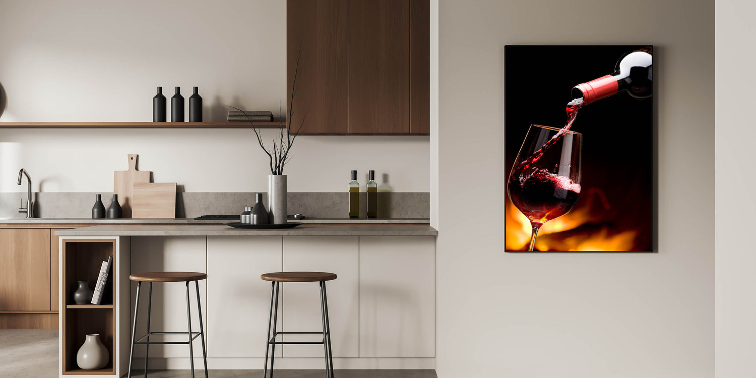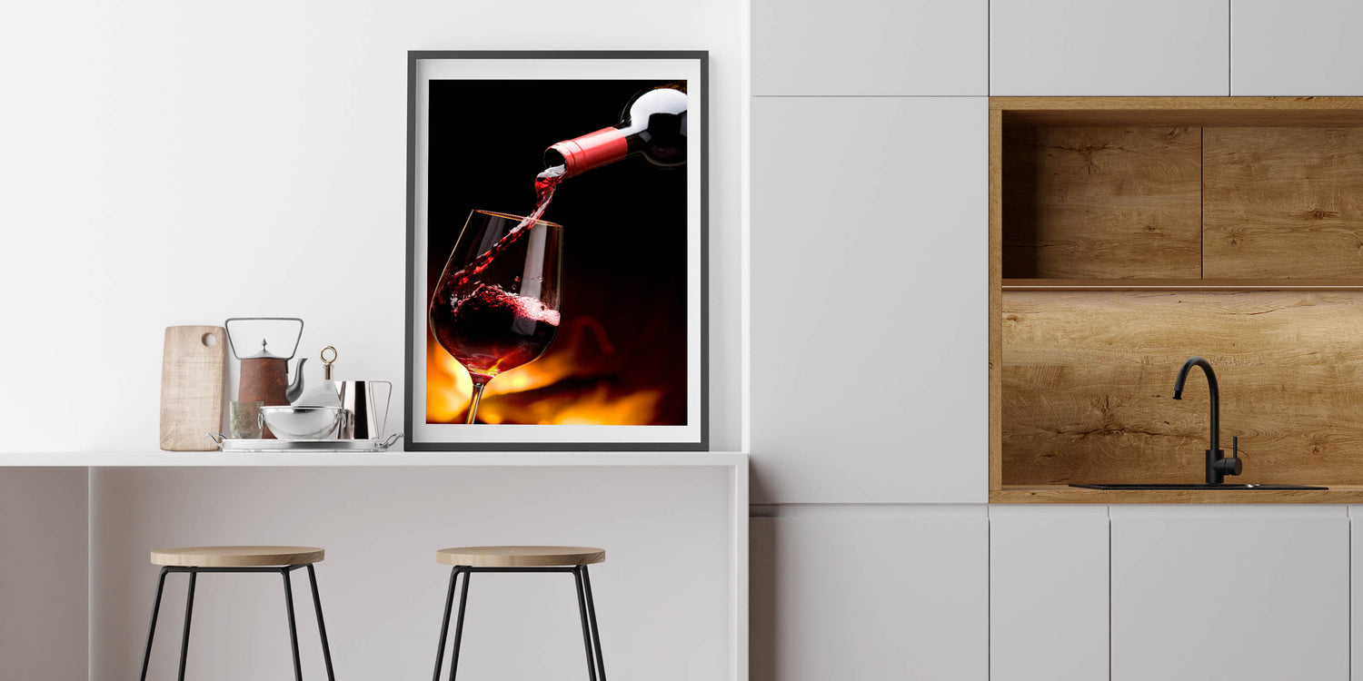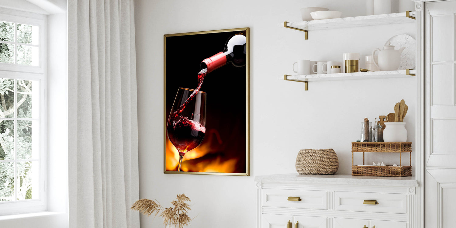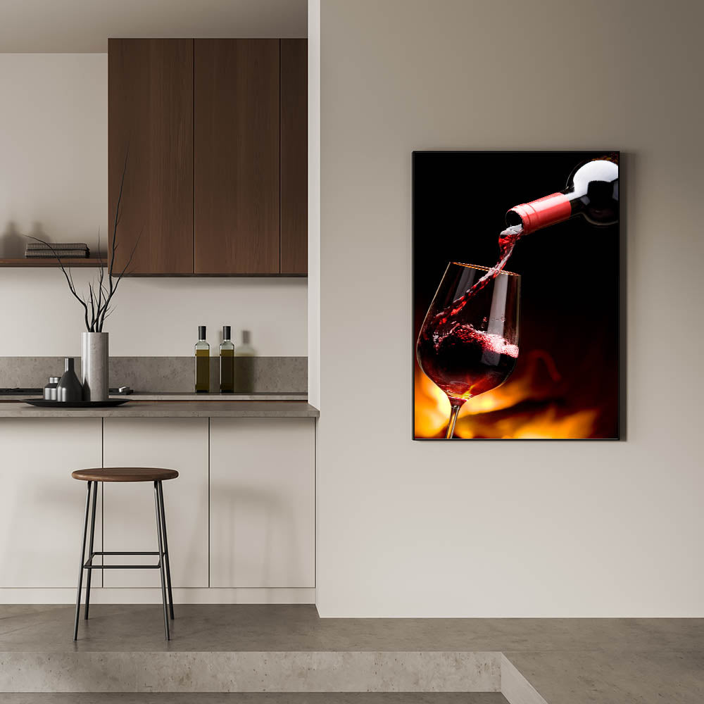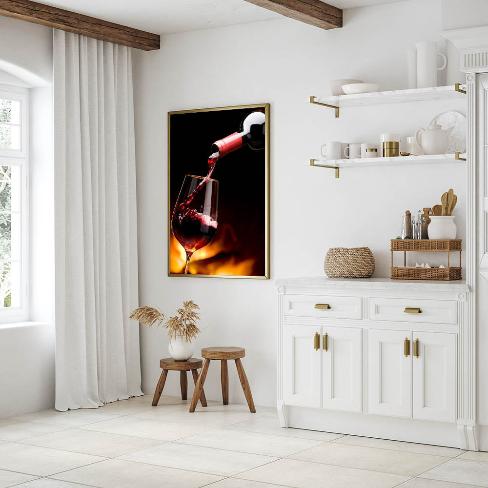 Enhance your kitchen with this sophisticated Kitchen Wall Art, showcasing the elegant pour of red wine into a glass against a dramatic backdrop. Perfect for wine lovers and culinary enthusiasts, this piece adds warmth and refinement to any kitchen or dining area.