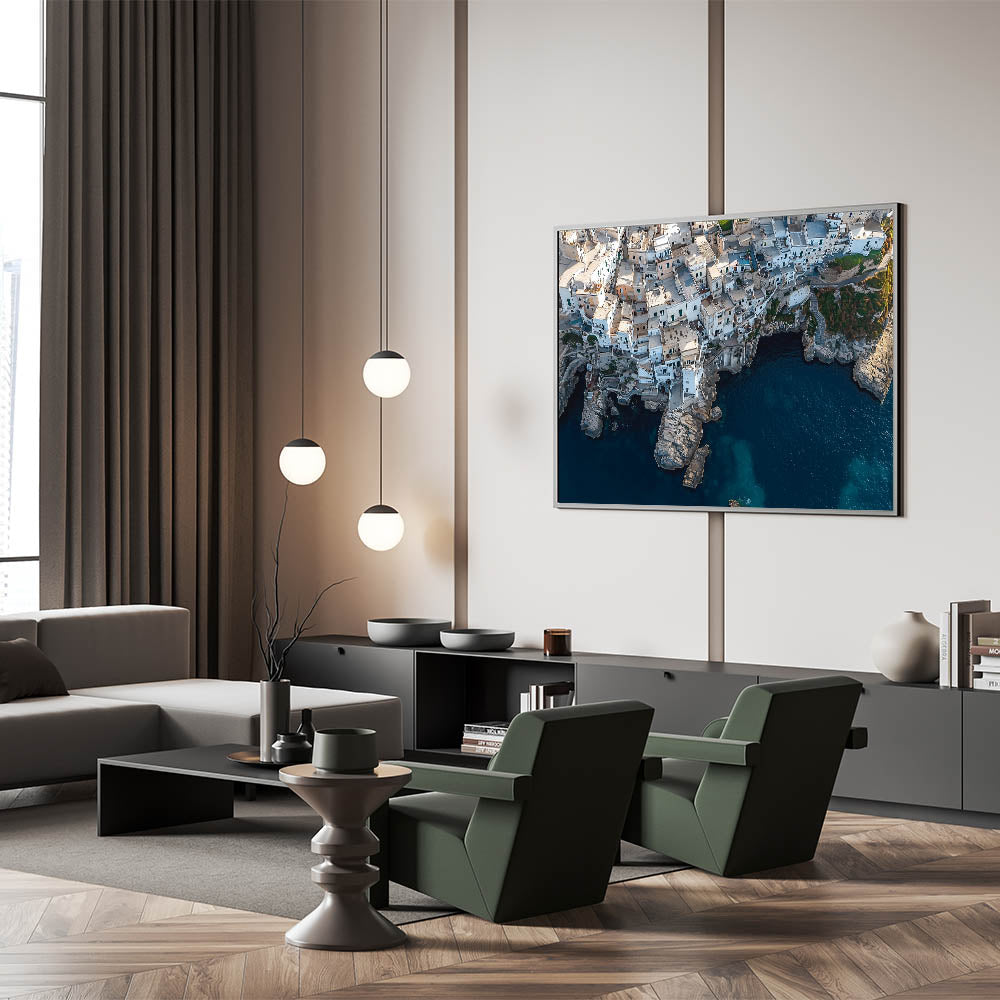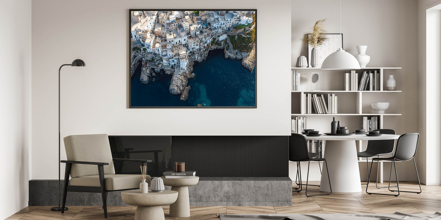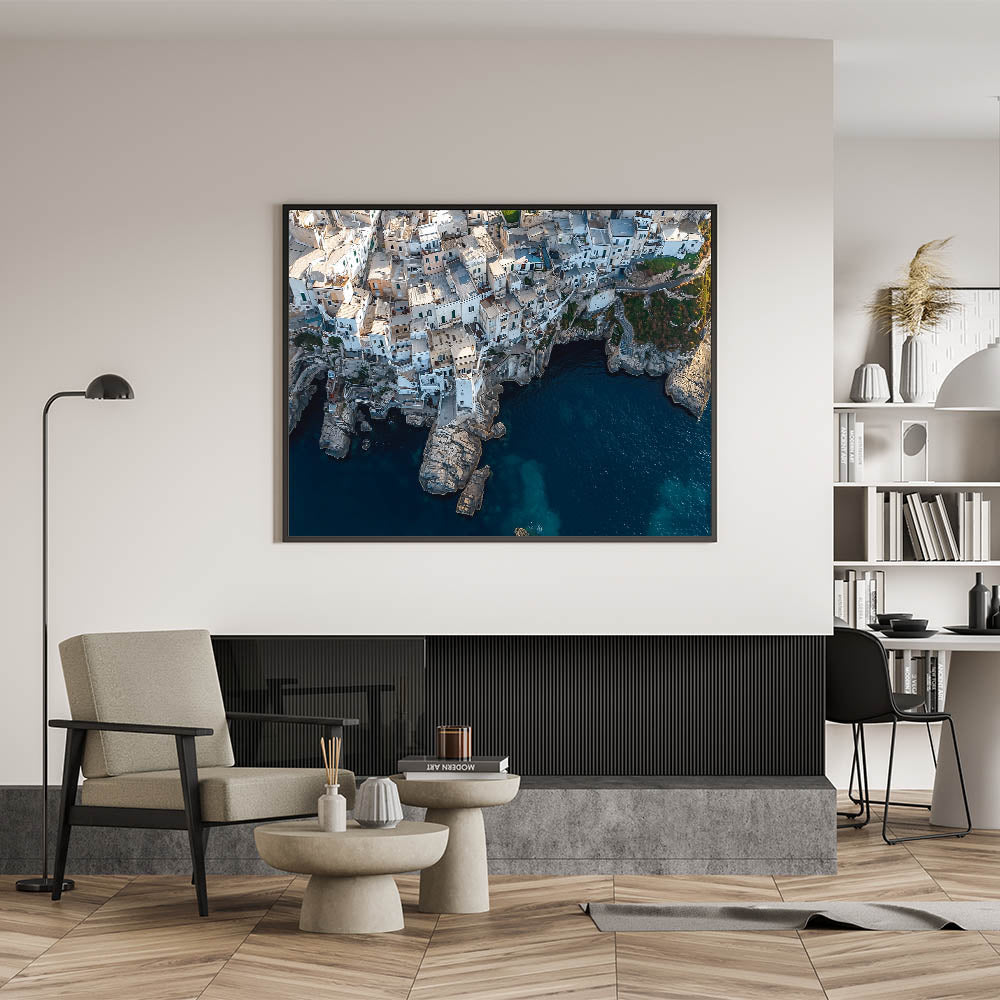 This piece is ideal for anyone who appreciates coastal beauty and Mediterranean charm. Whether displayed in a living room, bedroom, or office, it brings a serene yet lively atmosphere to your décor. Elevate your walls with beautiful cliffs art and decorative cliffs prints that celebrate the harmonious blend of human creativity and natural beauty.