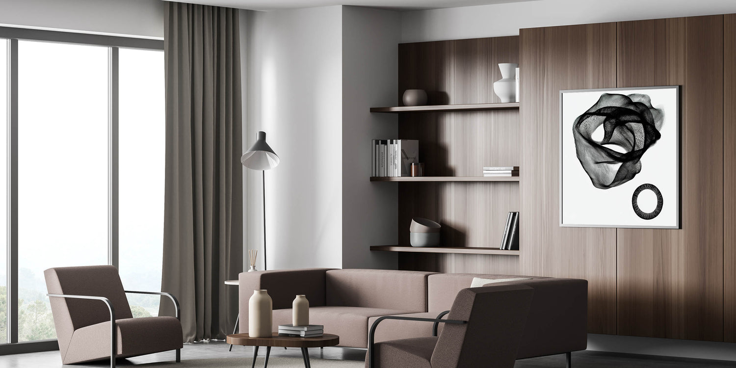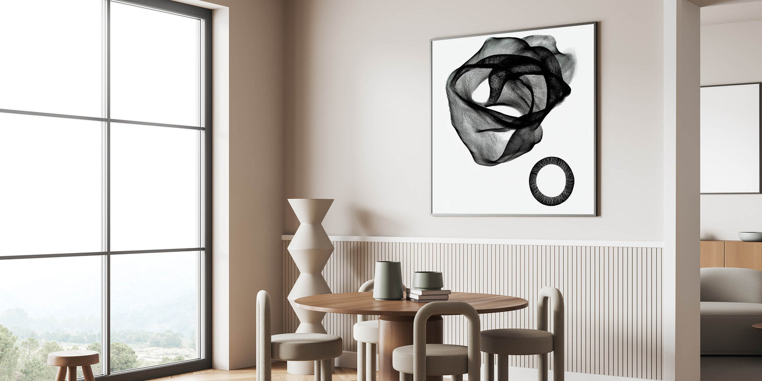 - Abstract art pieces with a minimalist, monochrome aesthetic