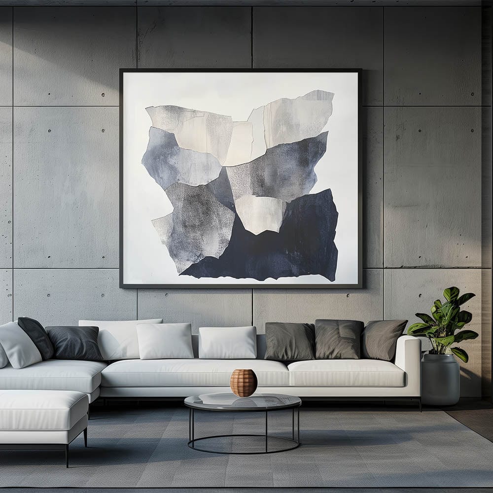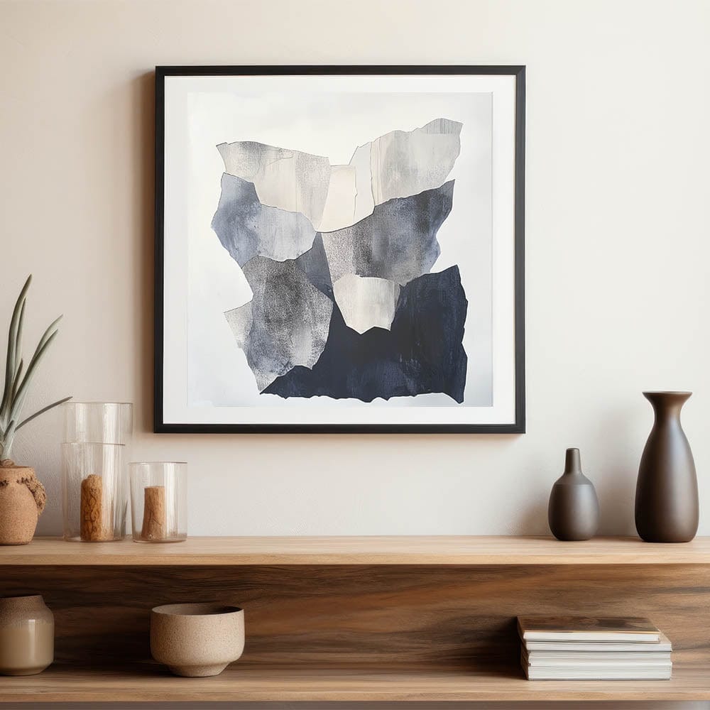 Explore the refined elegance of “Layered Terrain in Black & Beige,” a minimalist abstract wall art piece featuring organic shapes and tonal contrasts. With textured fragments in black, beige, and soft gray assembled like a modern collage, this artwork offers a calming and balanced visual impact perfect for contemporary interiors.