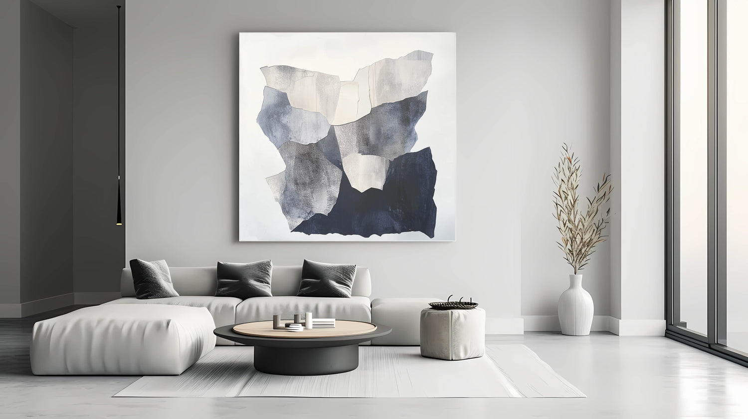 Let this contemporary abstract canvas bring grounded sophistication to your space through its organic layout, subtle textures, and timeless palette. A perfect match for clean, design-forward environments.