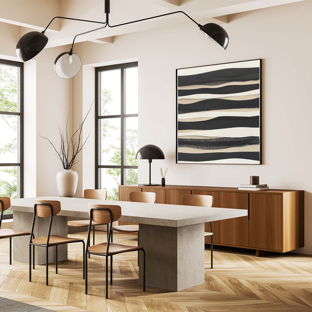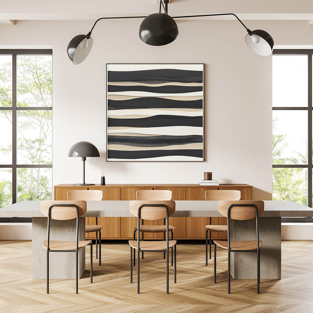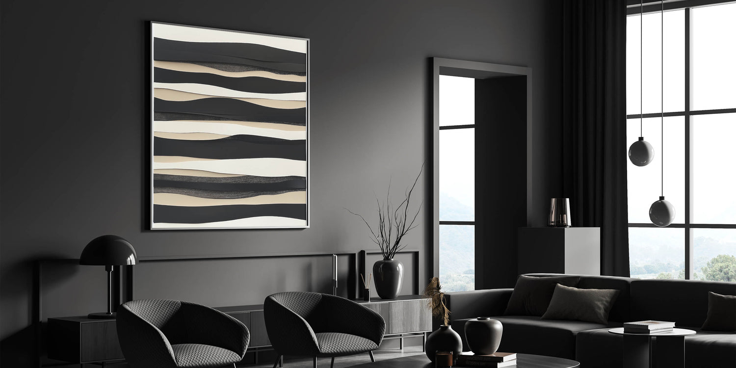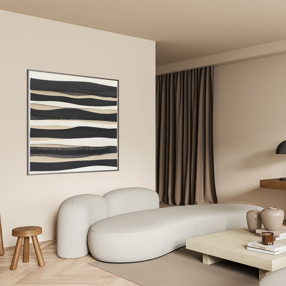 Elevate your interior with this sophisticated minimalist abstract wall art, featuring flowing layers of black, white, and beige that bring texture and movement to any space. This piece from the Modern Abstract Collection embodies harmony through simplicity, making it a standout choice for contemporary and neutral design palettes.