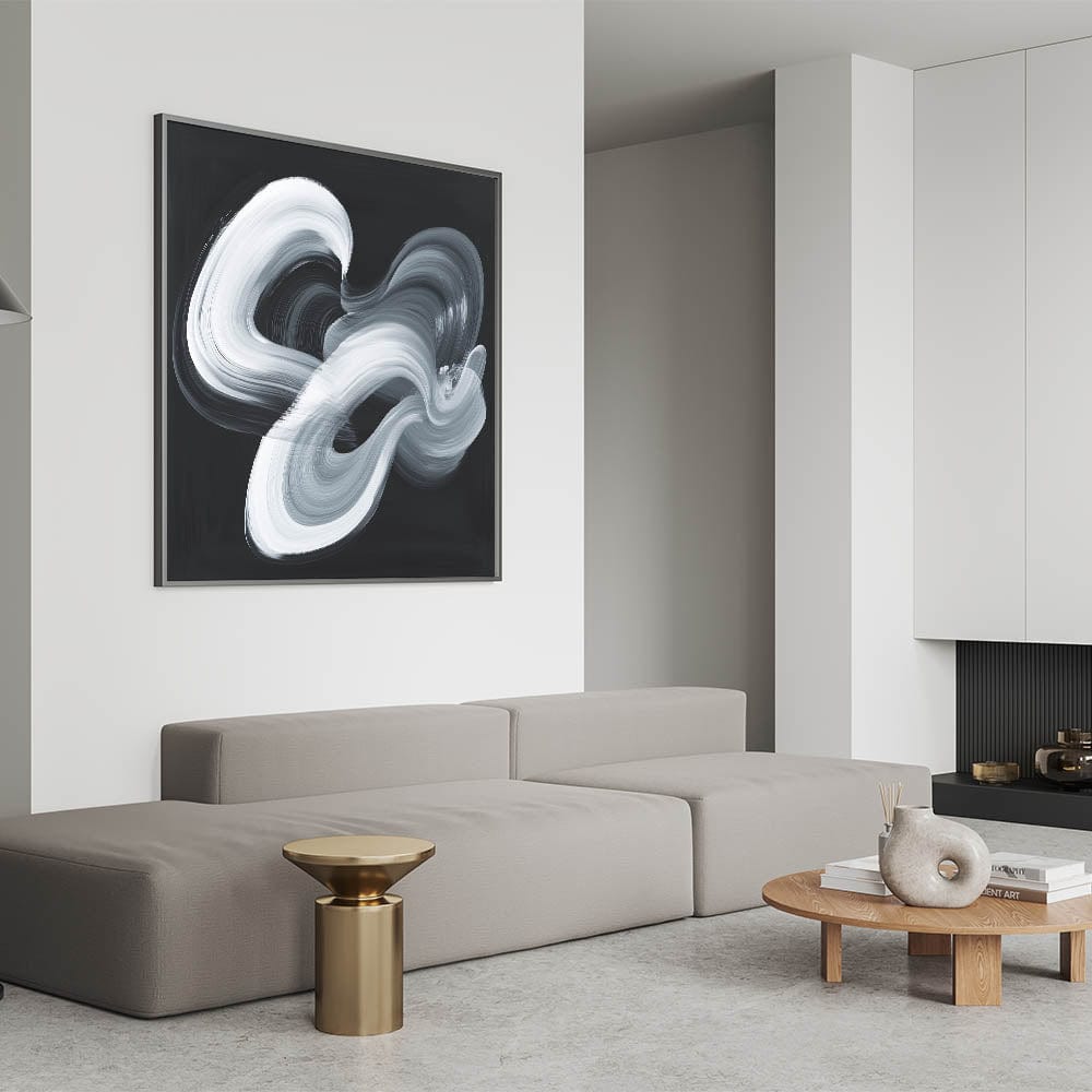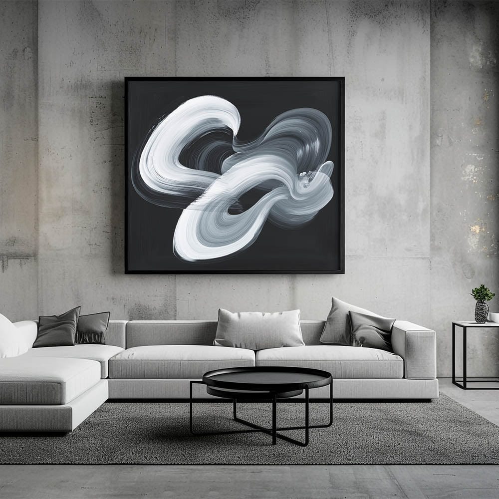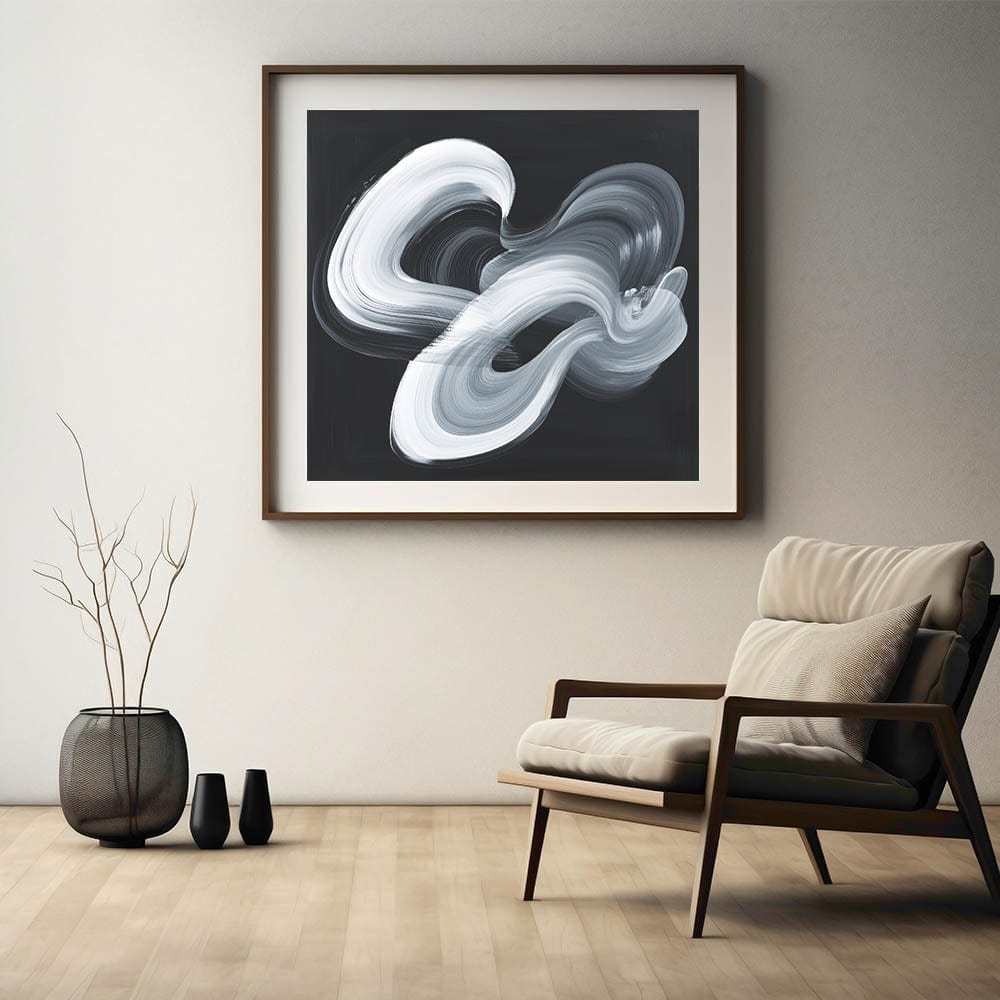 Minimalist Abstract Wall Art – Monochrome Motion Swirl