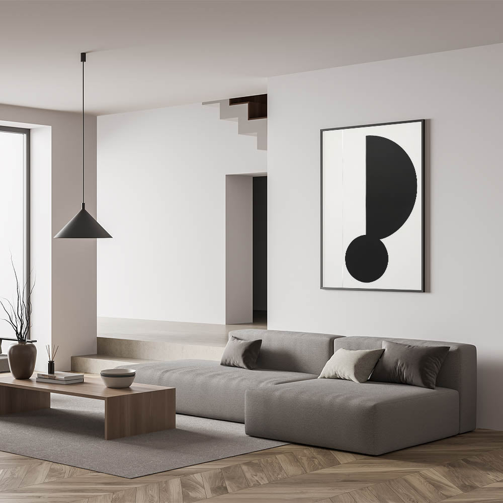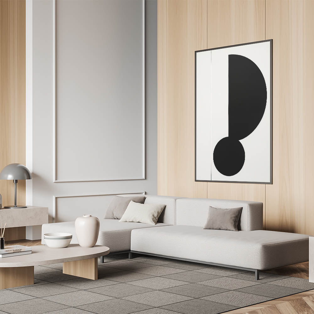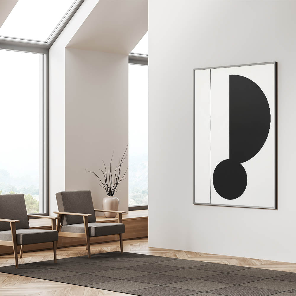 This minimalist geometric art piece is an eye-catching addition to any decor, bringing a modern edge with its bold and simple design. Perfect for those who appreciate the power of clean shapes and contrasts.