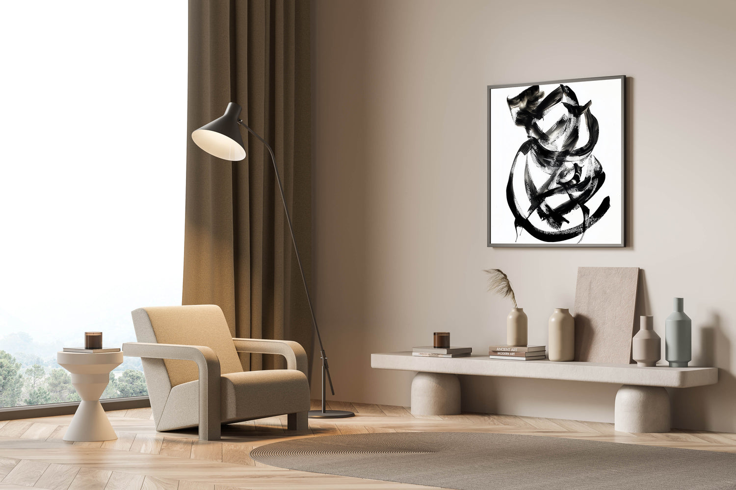 Embrace the elegance of simplicity with this Minimalist Black and White Line Art. Featuring bold, sweeping black brush strokes on a clean white background, this piece creates a striking visual contrast that commands attention while maintaining a sense of balance and refinement. Perfect for modern, industrial, or minimalist spaces, this artwork showcases the beauty of abstract design in its purest form.