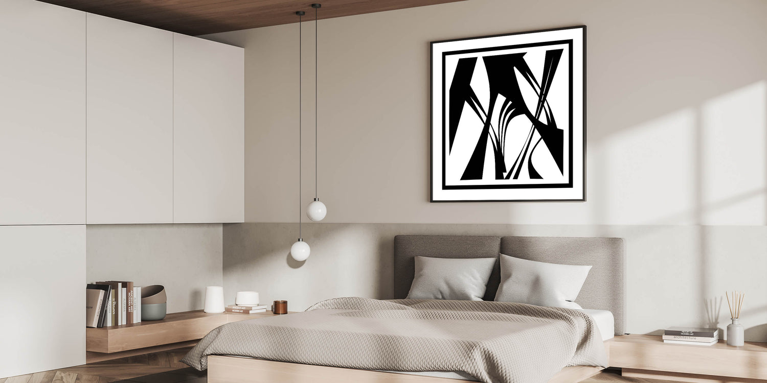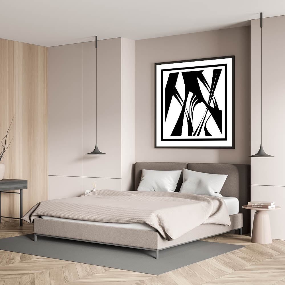 This modern bedroom art adds a sense of elegance and structure to your space. Whether you prefer acrylic bedroom wall art or rolled canvas bedroom art, this piece offers versatility and sophistication, enhancing both minimalist and bold decor styles.