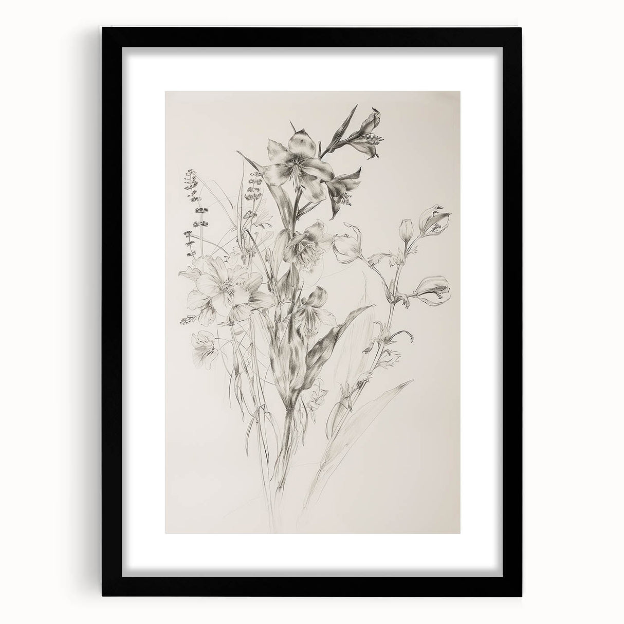 Embrace elegance and simplicity with this modern wall art, featuring a beautifully detailed black and white floral sketch. This living room wall art showcases delicate hand-drawn flowers in a minimalist, monochrome palette, bringing a touch of timeless sophistication. Whether displayed as canvas wall art or framed wall art, this piece enhances modern living room decor with its graceful and artistic appeal.