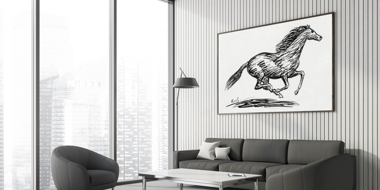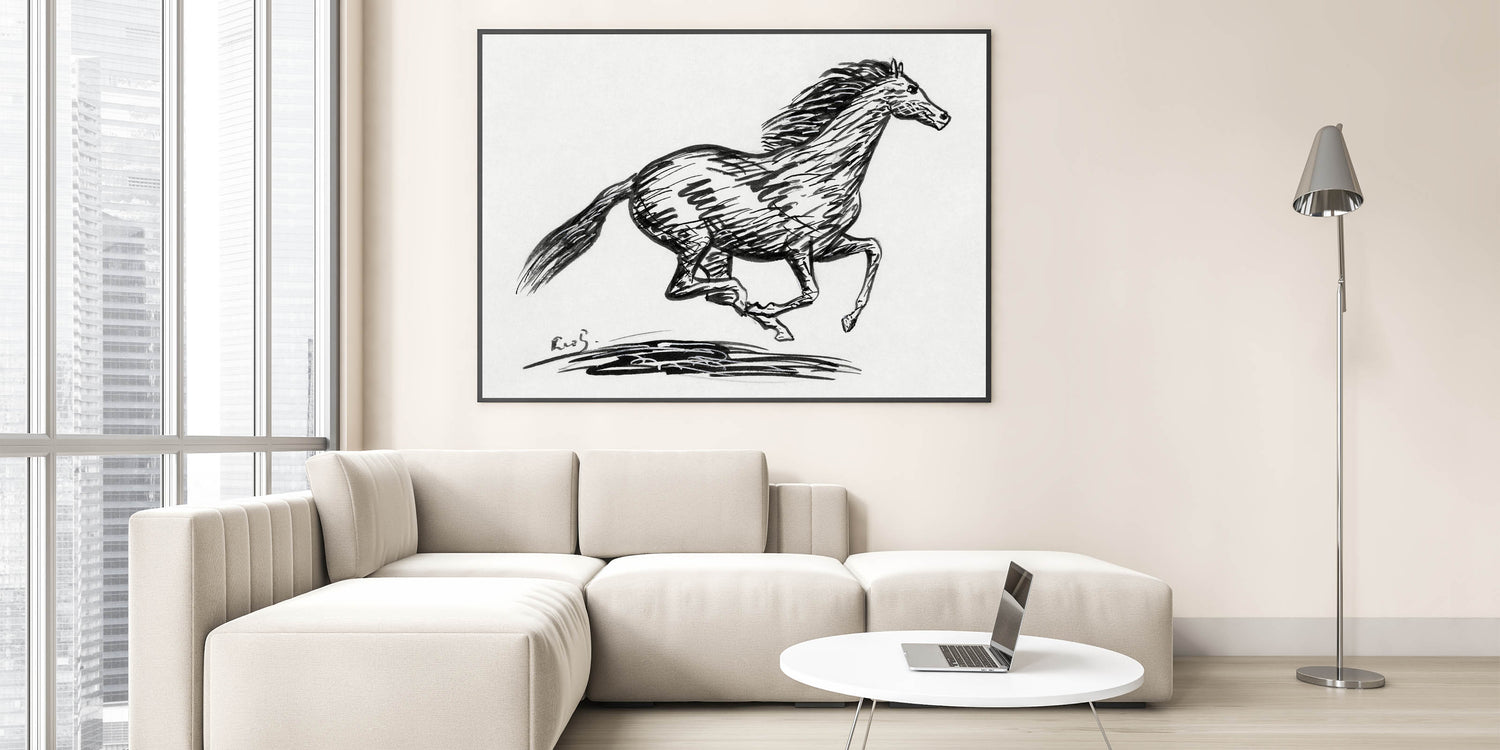 Embrace the spirit of modern design with this galloping horse art, a perfect blend of simplicity and sophistication that adds a refreshing touch to any space.
