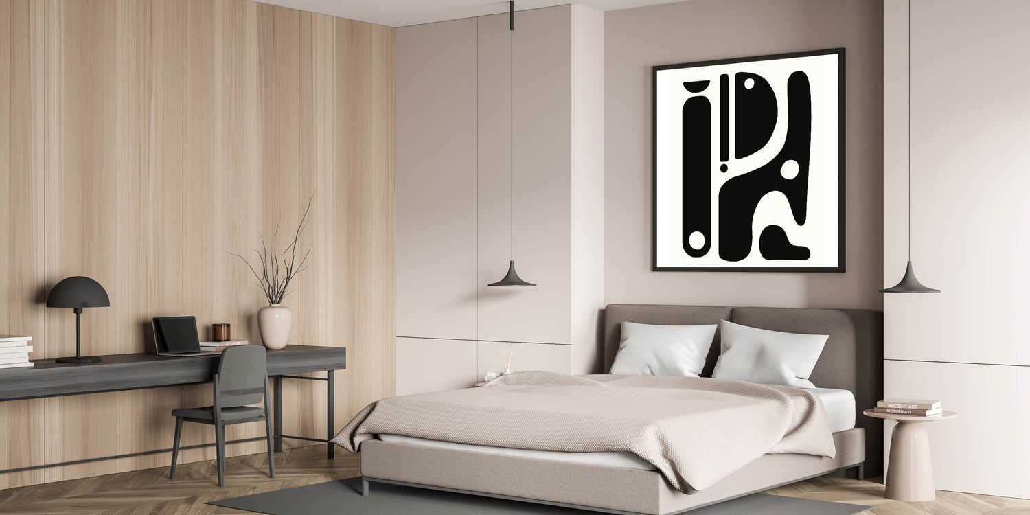 - Modern art pieces for bedroom decor that complement minimalist interiors
