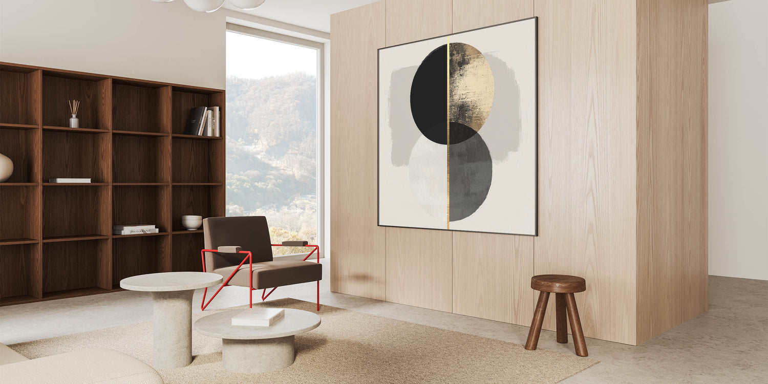 Minimalist Geometric Wall Art - Black, Gold, and Gray Abstract Circles