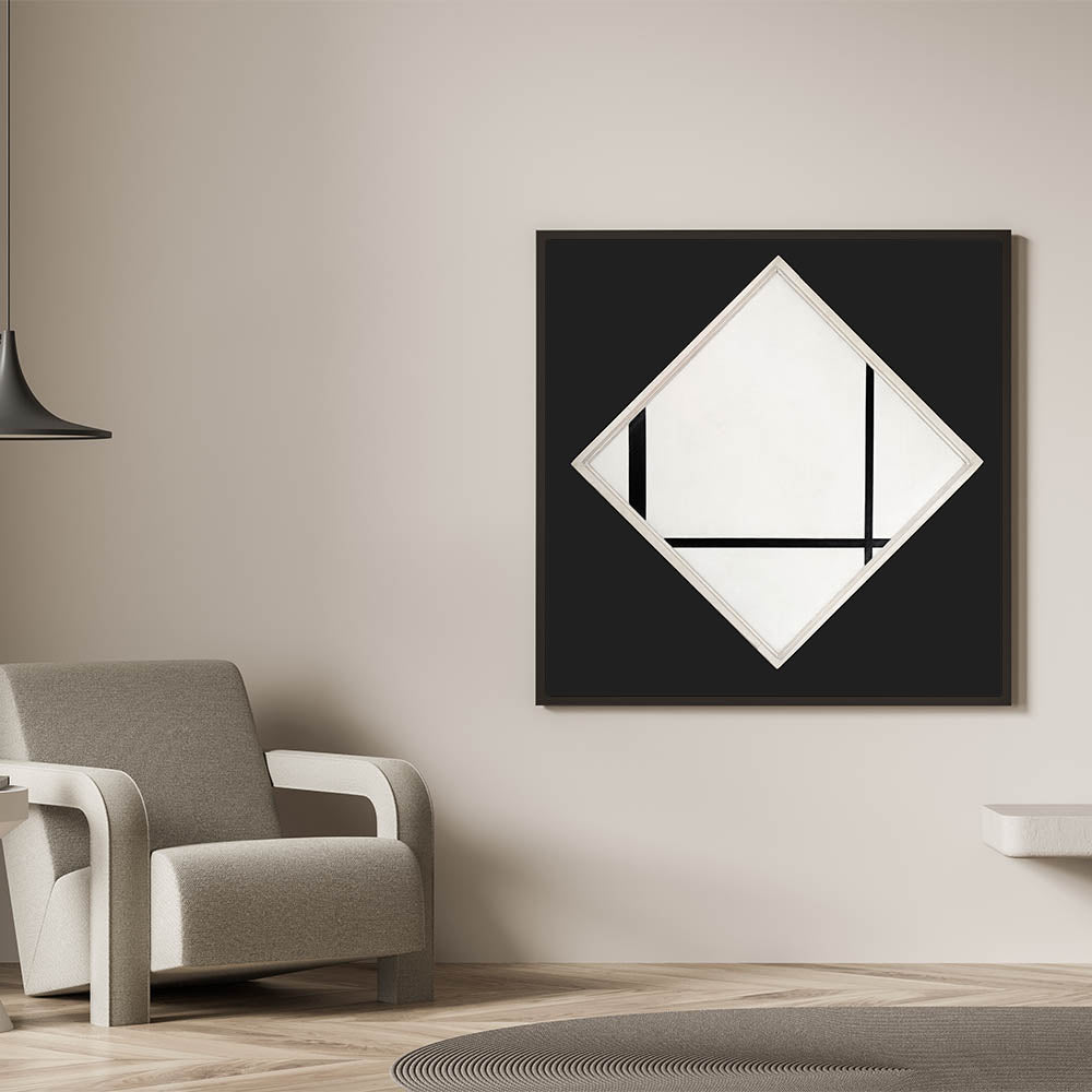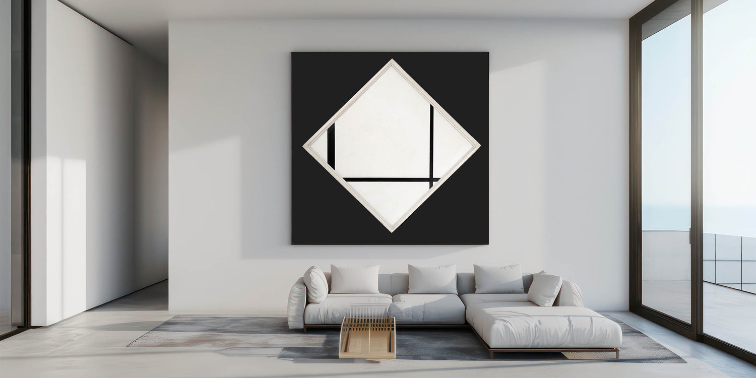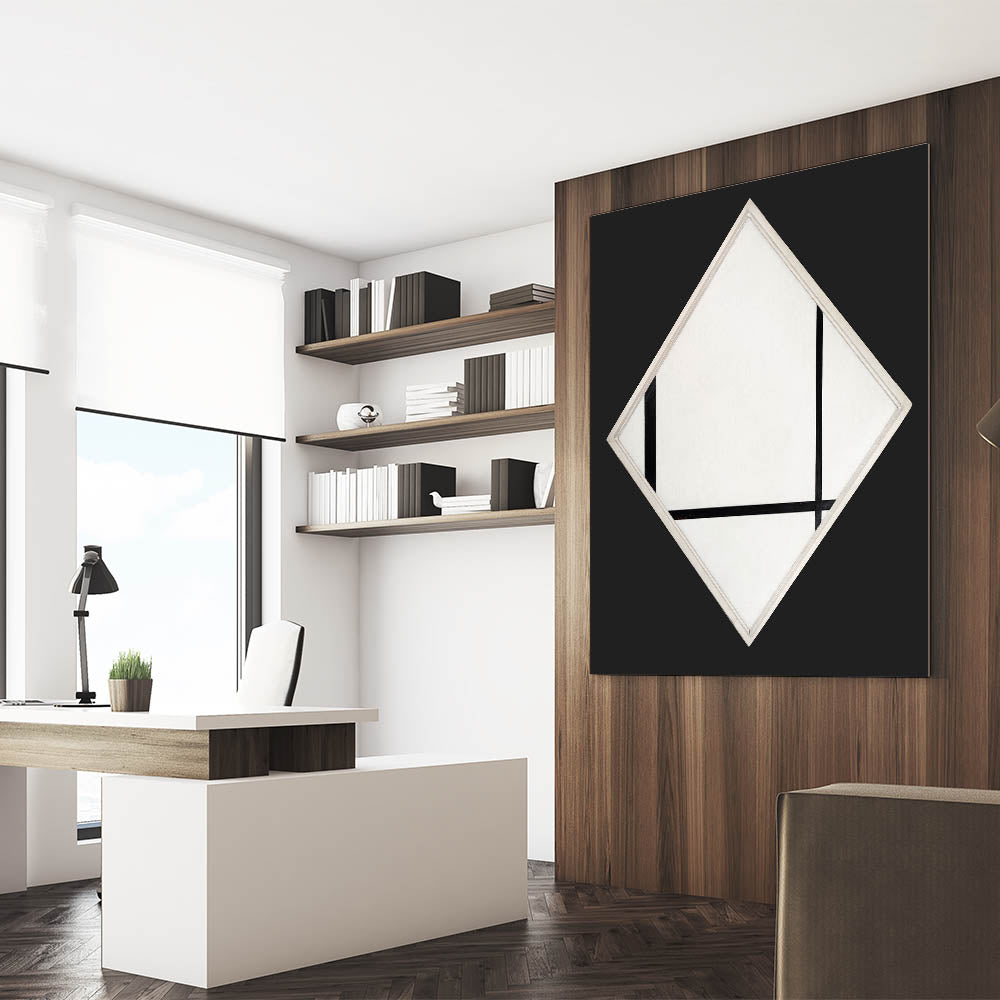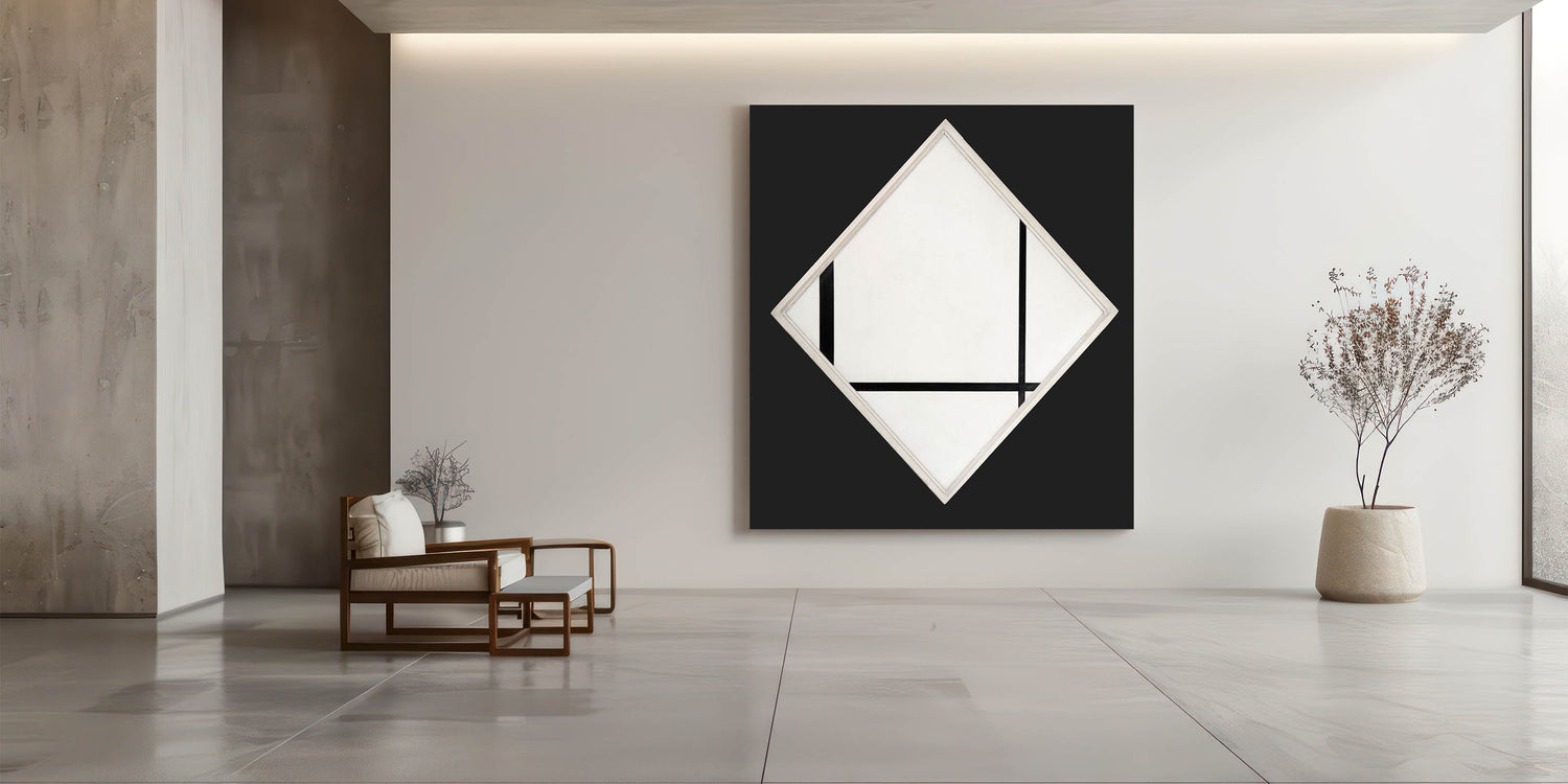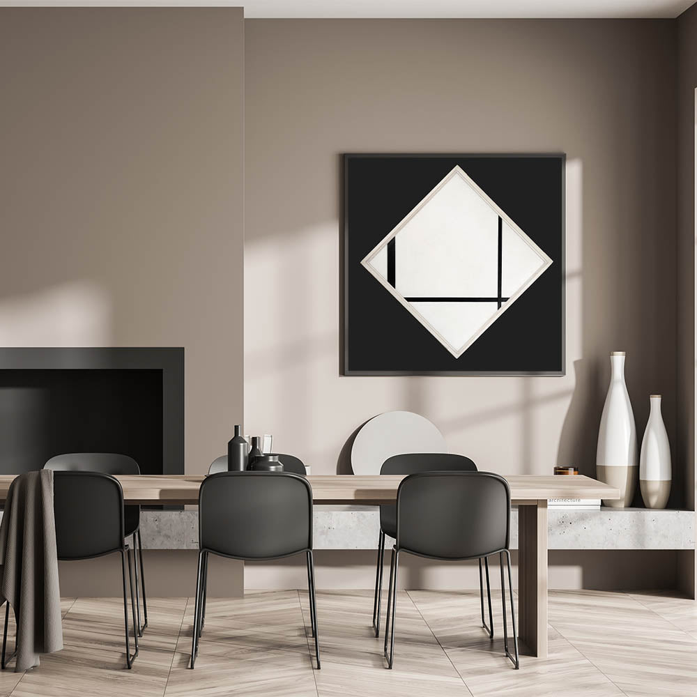 Elevate your decor with this minimalist modern art piece, featuring a sleek black and white geometric design that embodies simplicity and elegance. This artwork’s clean lines and precise form make it a perfect addition to contemporary and modern spaces, ideal for those who appreciate minimalist modern decor. Its neutral palette allows it to blend seamlessly into any room, adding a sophisticated touch without overwhelming other design elements.