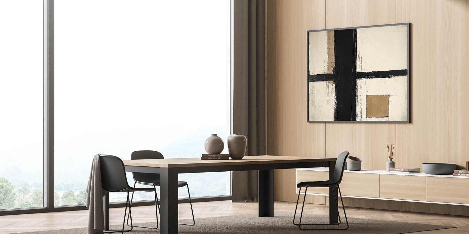 Modern Abstract Living Room Wall Art – Black & Beige Canvas