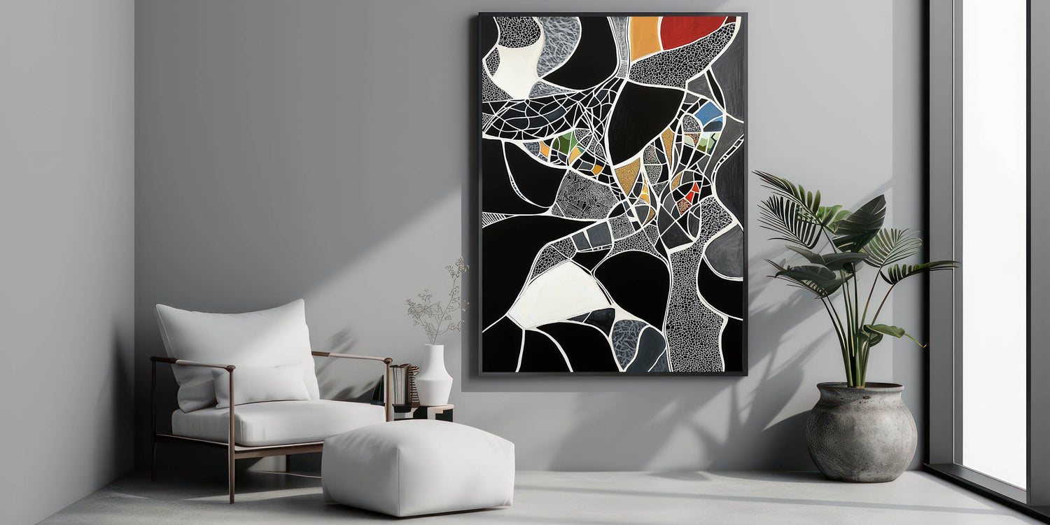 This large wall art piece combines bold contrast and intricate details, making it an elegant yet dynamic addition to any interior. Whether displayed as stretched canvas, framed wall art, or acrylic glass prints, this mosaic-inspired artwork adds an artistic edge to your home decor.