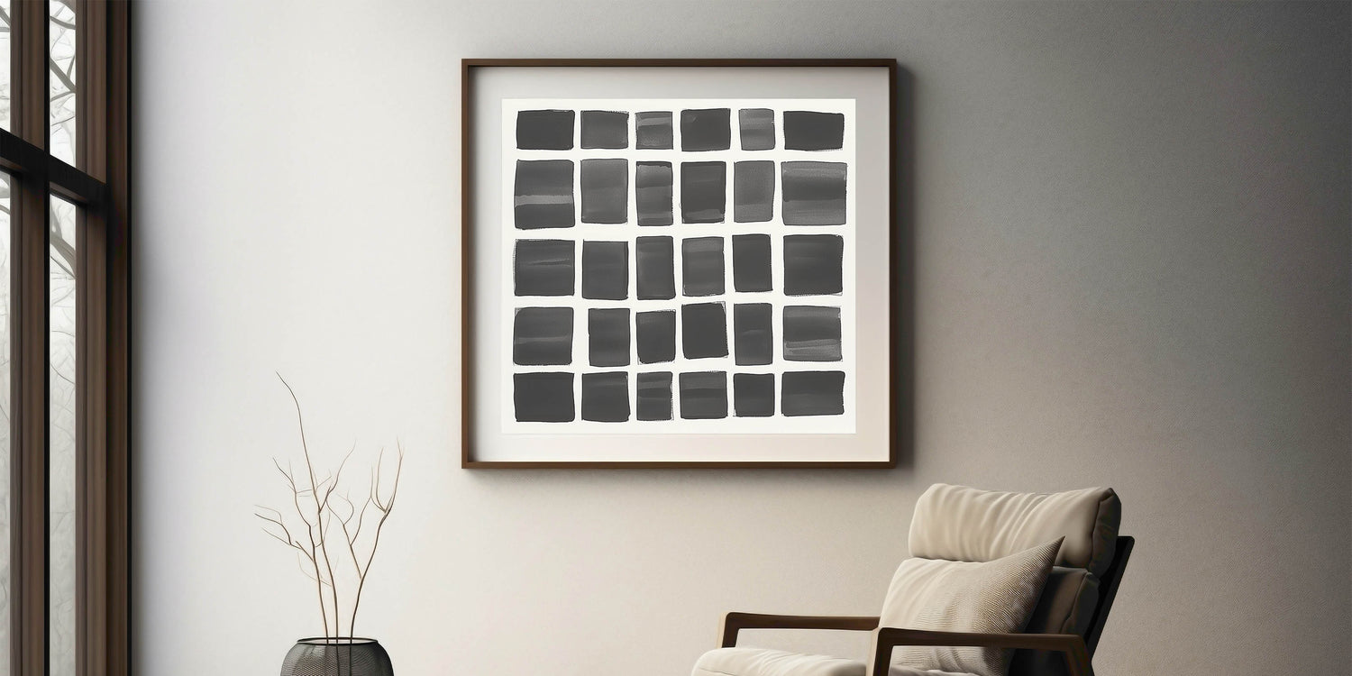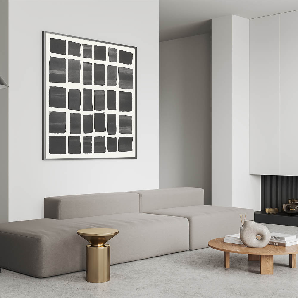 Modern Abstract Wall Art – Black Grid of Textured Minimal Squares