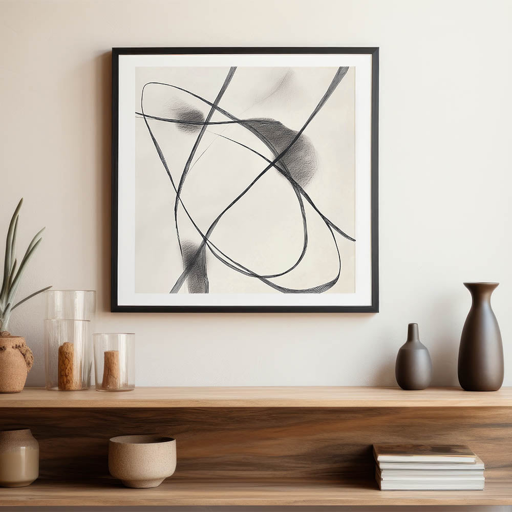 Modern Abstract Wall Art – Dynamic Charcoal Linework on Beige