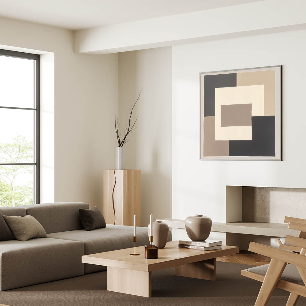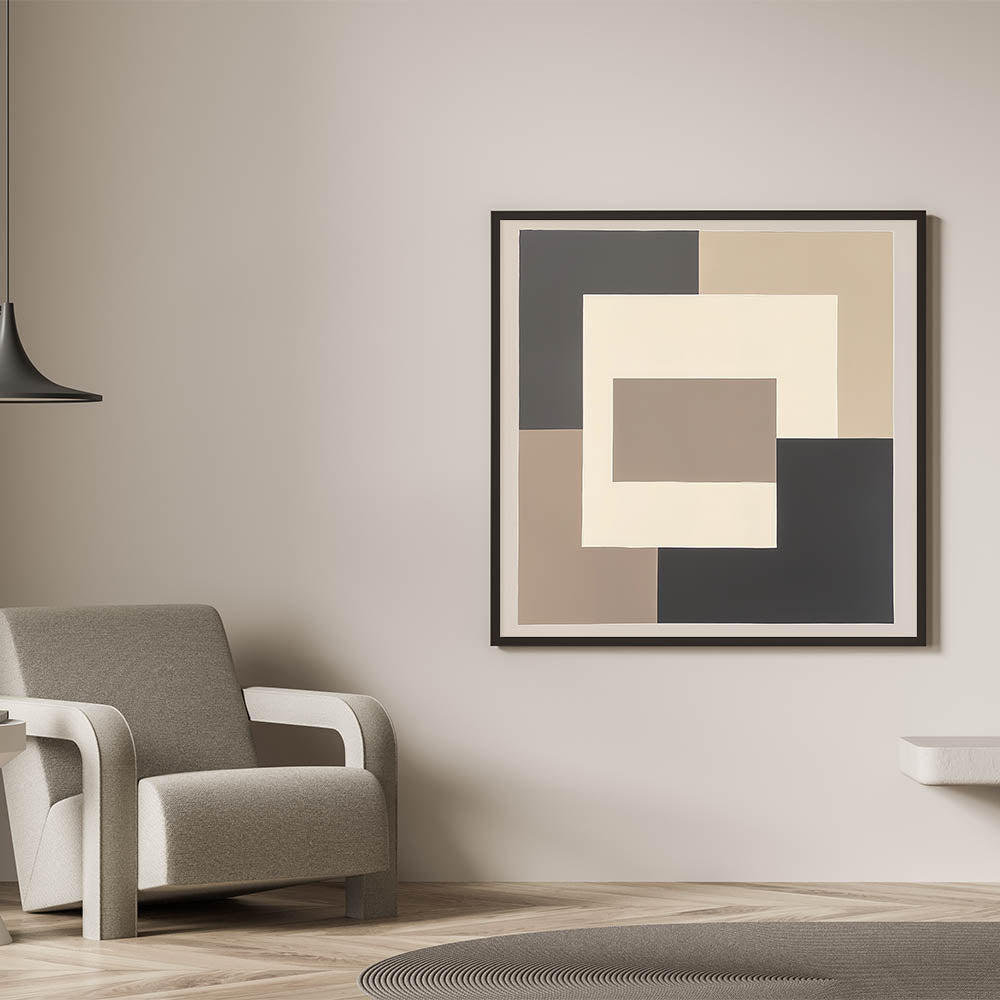 Modern Abstract Wall Art – Neutral Geometric Square Design