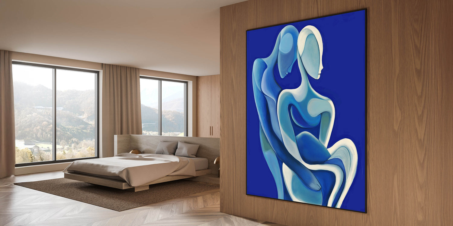 Modern Bedroom Art – Abstract Blue Couple Framed Canvas Print