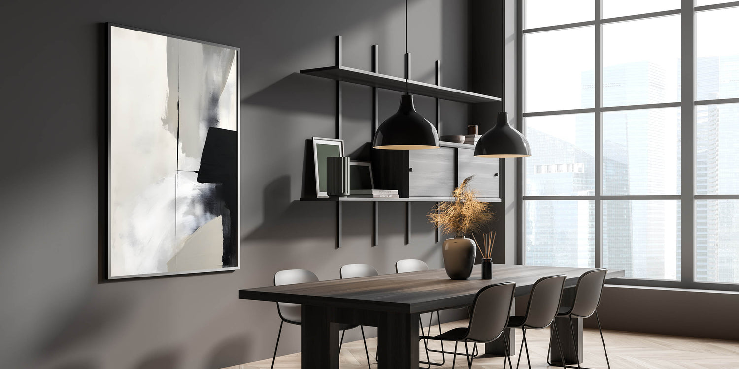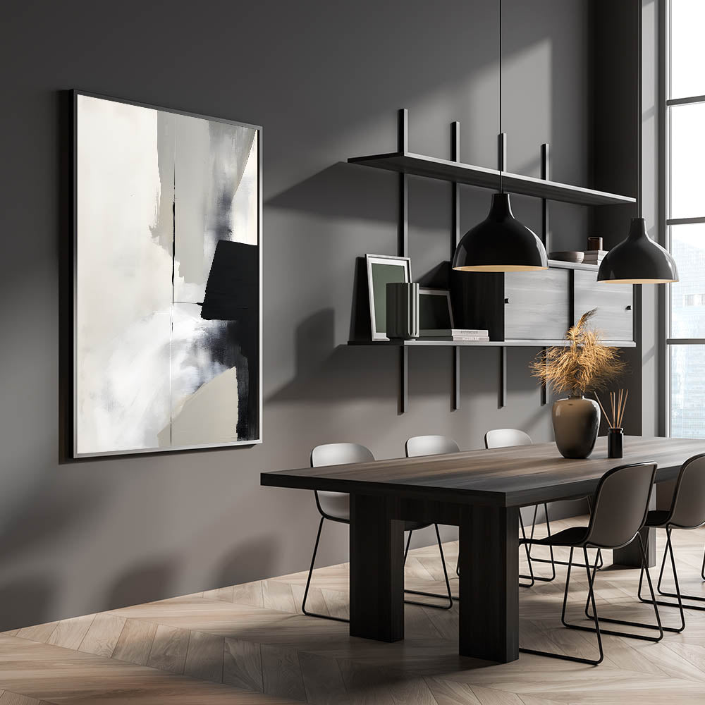 Modern Dining Room Art – Black and White Abstract Wall Decor