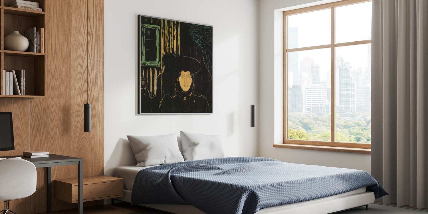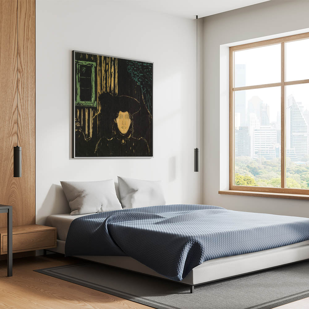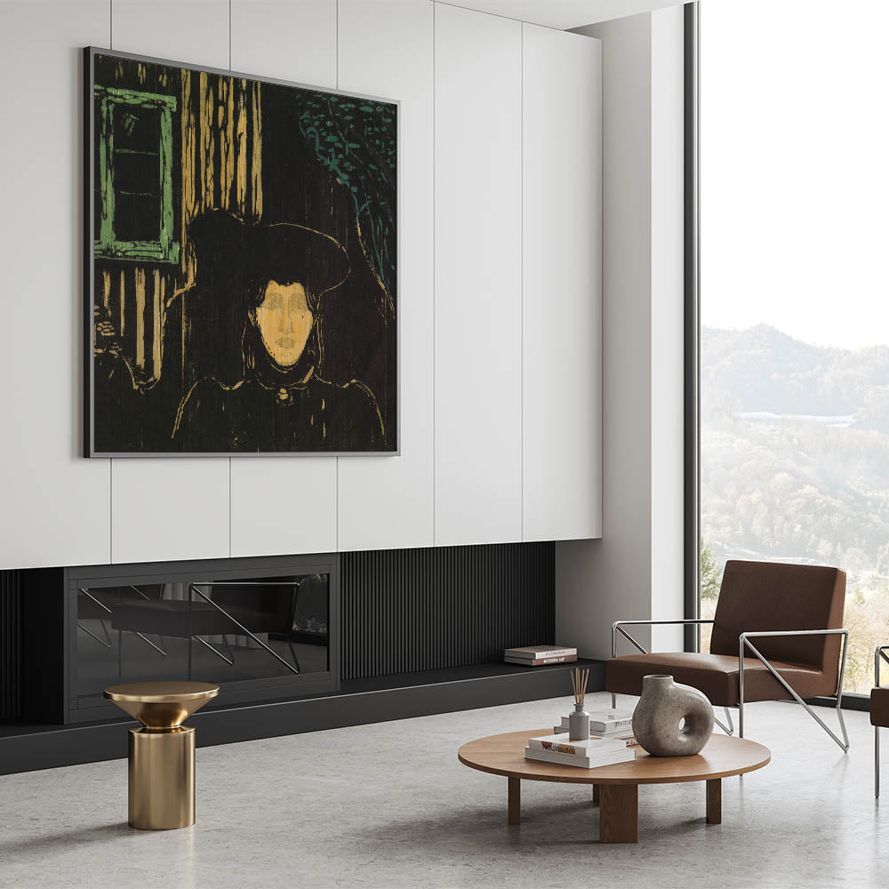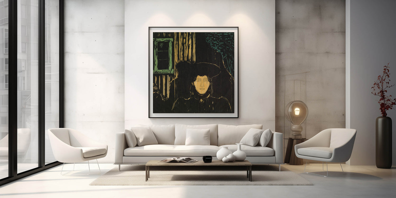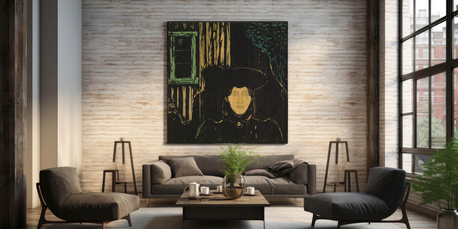 Bring the emotive power of Expressionism into your home with this stunning wall art inspired by Edvard Munch's Moonlight. This modern Expressionist masterpiece captures the haunting beauty of a moonlit scene, featuring a woman surrounded by rustic textures and deep, contrasting tones. Perfect for creating an evocative focal point in any space, this artwork blends timeless artistry with contemporary decor trends.