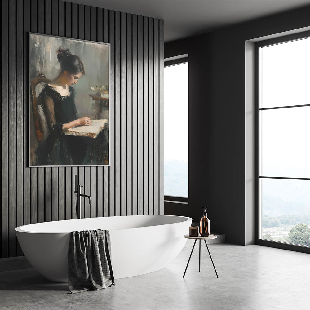 This stunning figurative canvas print brings sophistication and character to any room. Whether as a gift or a personal indulgence, it creates an atmosphere of thoughtful serenity and modern elegance.