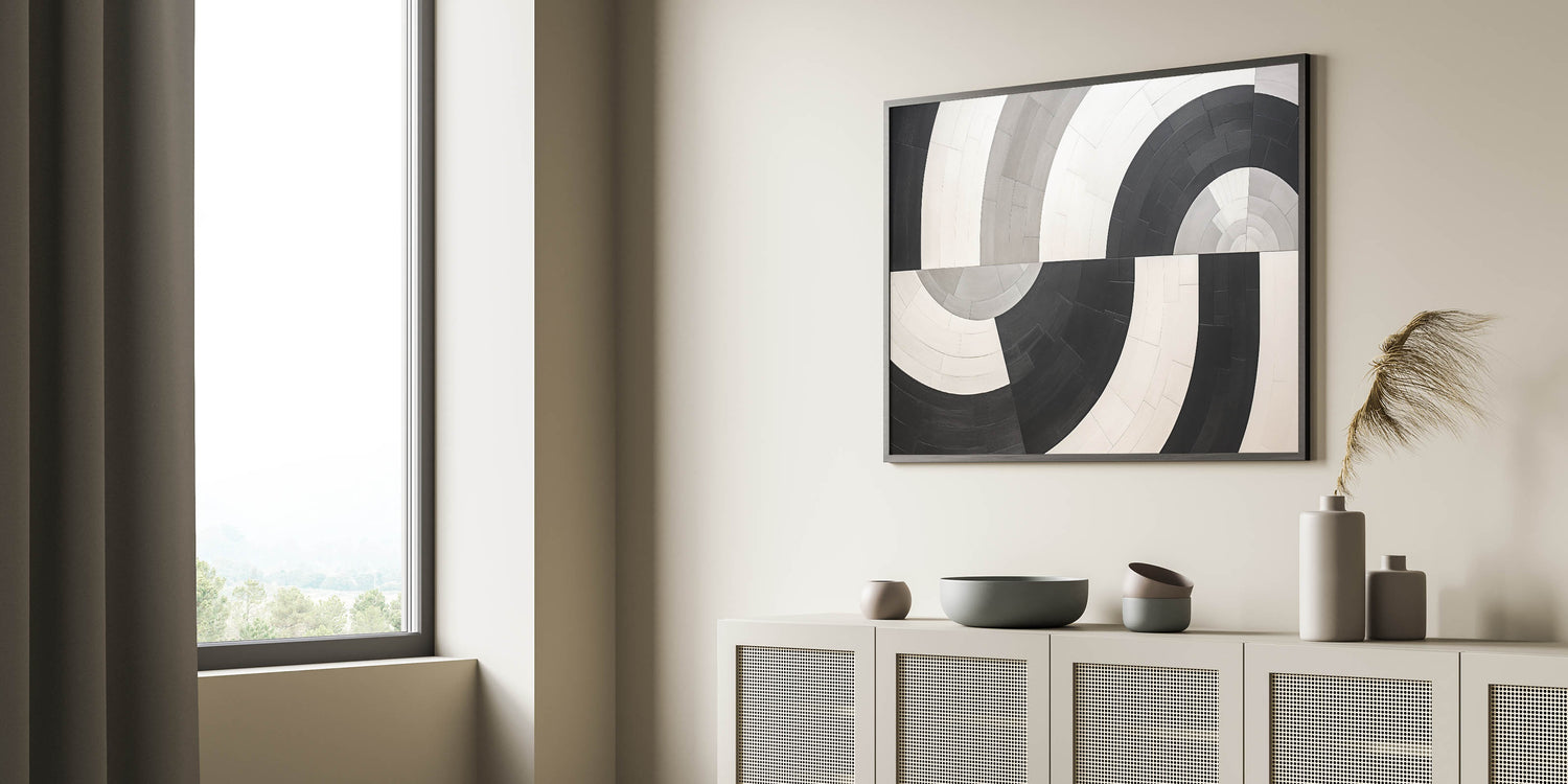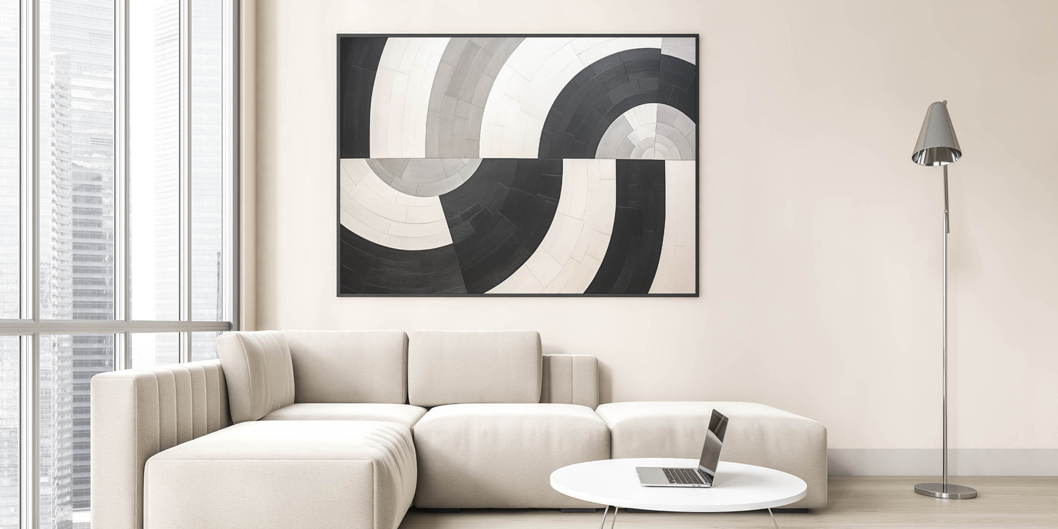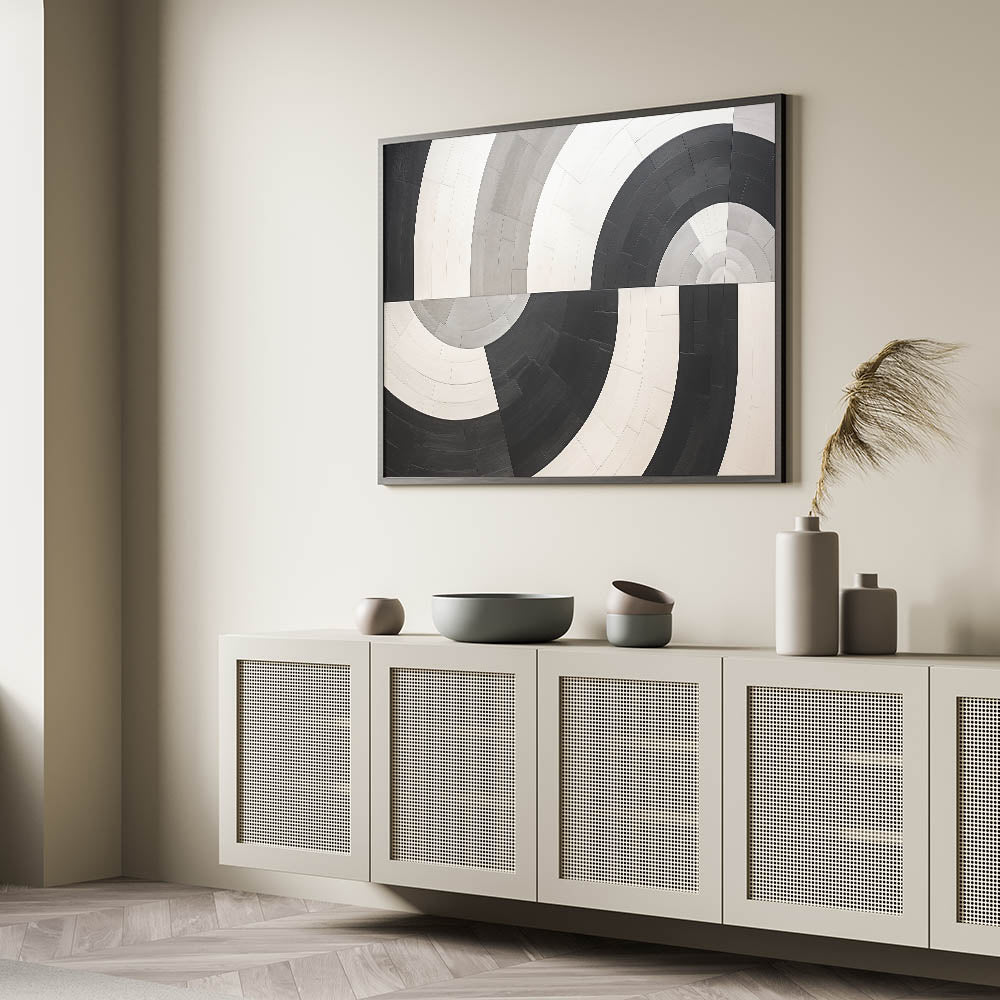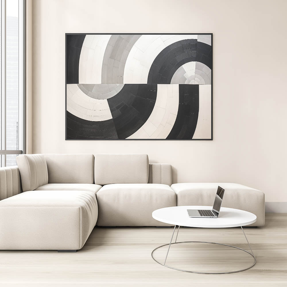 Add a touch of modern elegance to your space with this stunning monochrome abstract art piece.