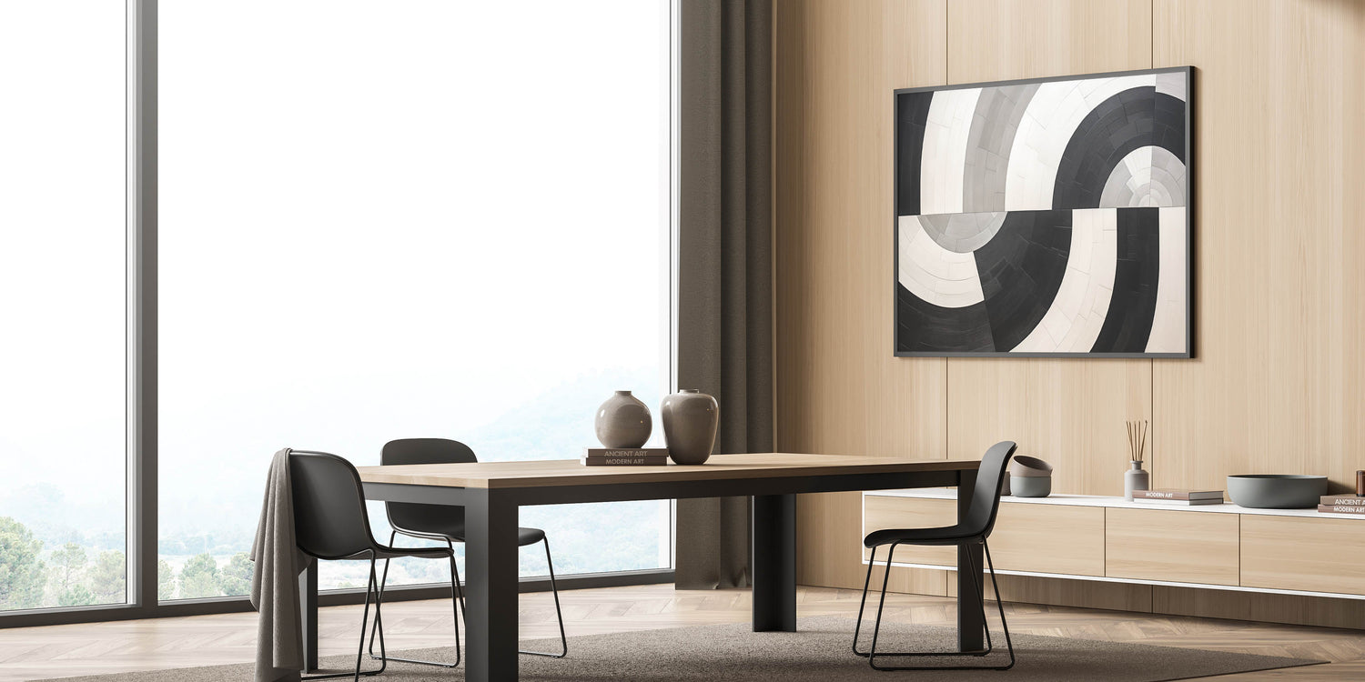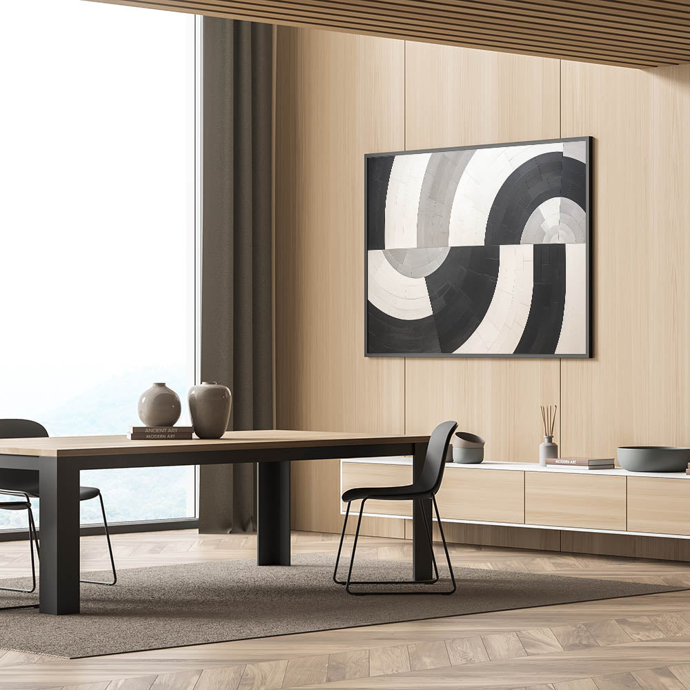 The minimalist composition and bold contrasts make it a perfect statement piece for contemporary interiors, offering a blend of sophistication and style.