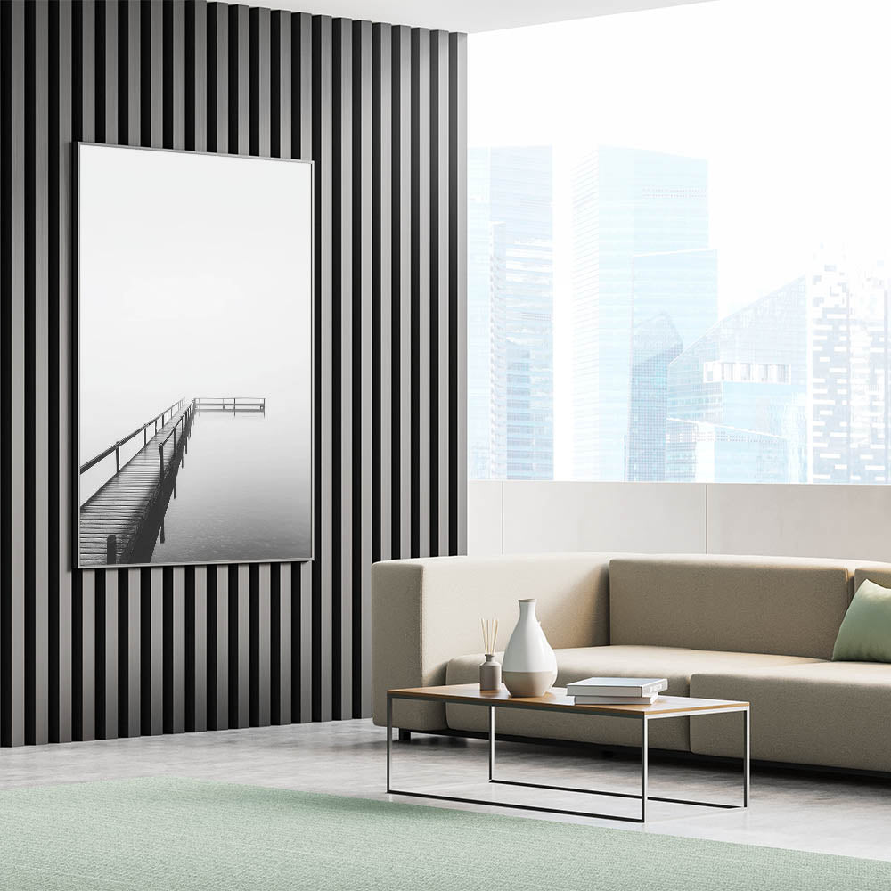 Add a sense of calm and introspection to your walls with this captivating minimalist pier design. Whether you're looking for a standout centerpiece or a subtle accent, this piece brings a touch of elegance and serenity to your home or office decor.