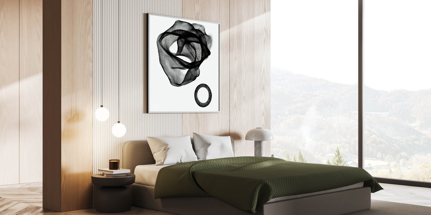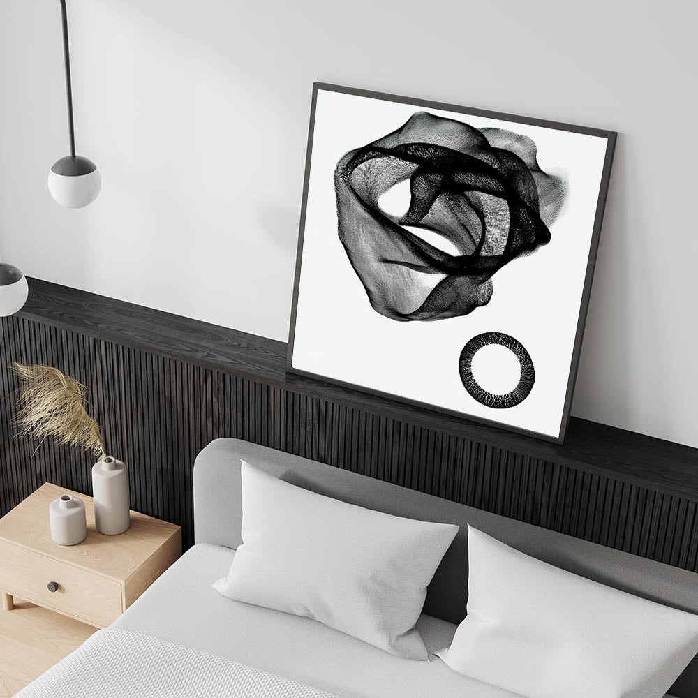 Enhance your bedroom with this modern bedroom art, a stunning black and white abstract piece designed to bring sophistication to any space. This customizable bedroom wall art features fluid, organic strokes, making it perfect for minimalist, contemporary, or industrial interiors. Whether you're looking for large-scale wall art for master bedrooms or a subtle yet bold accent, this piece effortlessly complements any décor.
