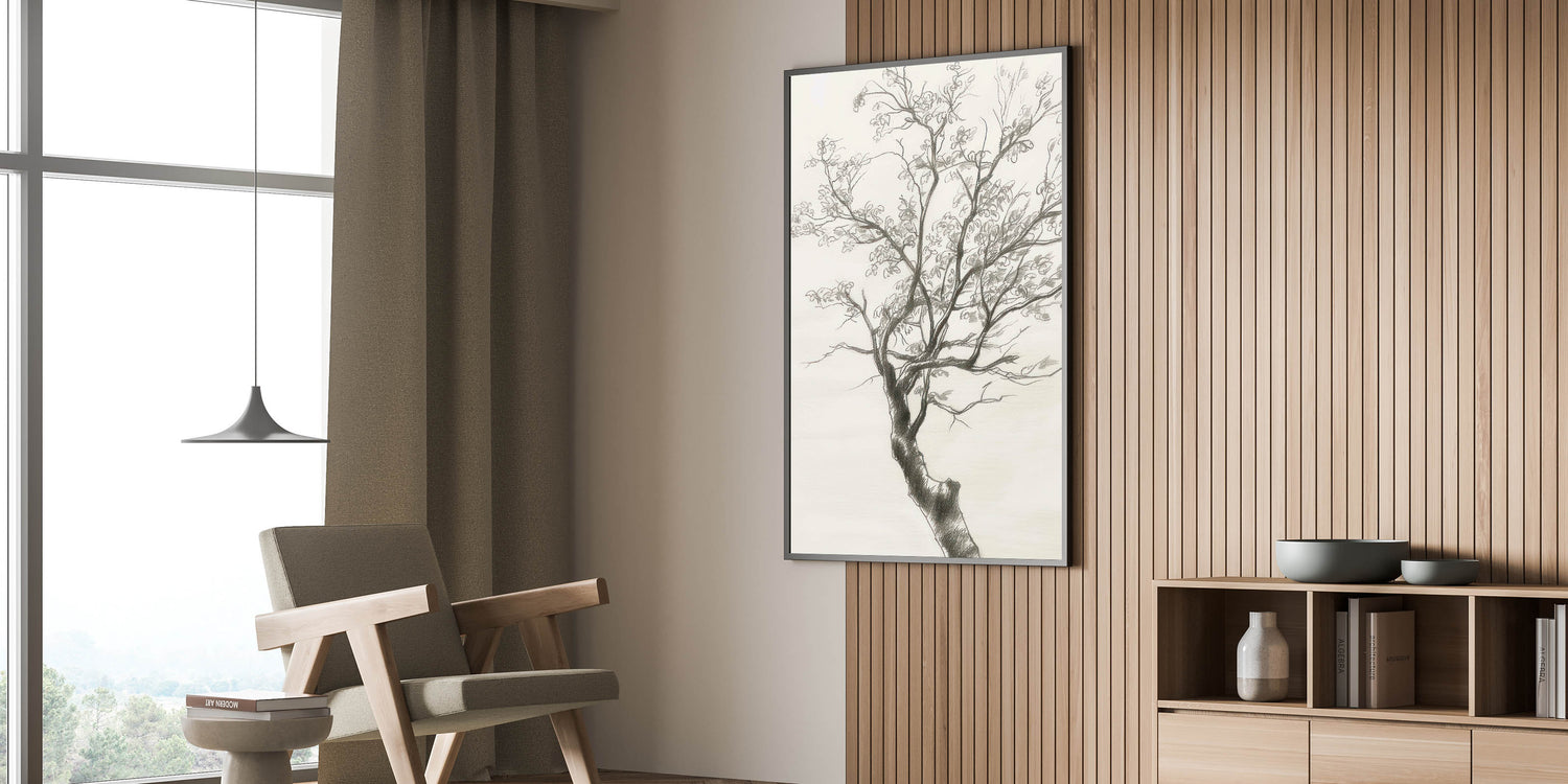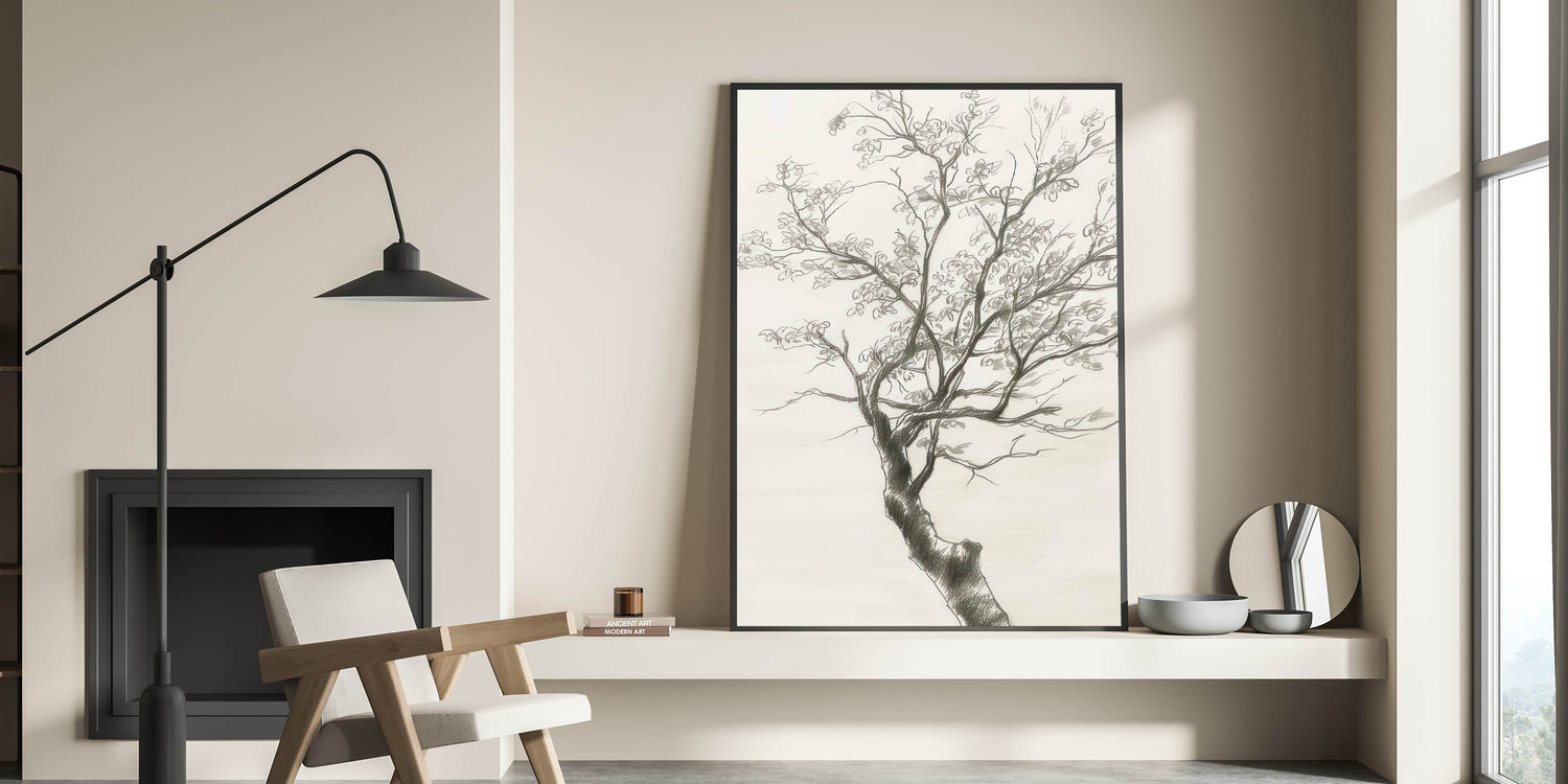 Enhance your living space with this sophisticated tree sketch wall art, a timeless blend of elegance and simplicity. This modern wall art captures the beauty of nature in black and white, making it a versatile addition to modern living room décor. Whether you choose canvas wall art, framed wall art, or acrylic glass, this contemporary art print brings a serene and artistic touch to any interior.