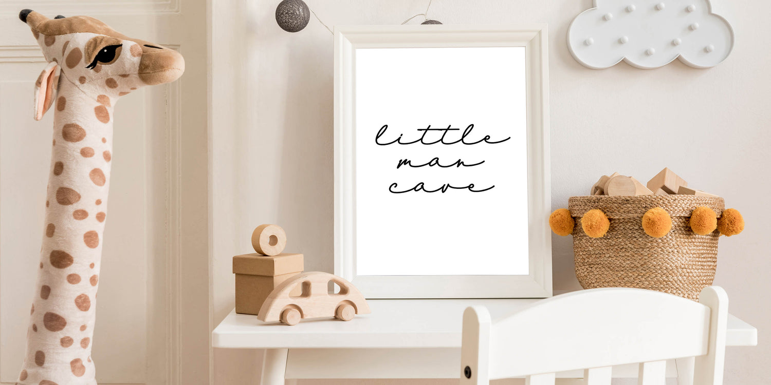 Modern Typography “Little Man Cave” Art Print for Kids Room
