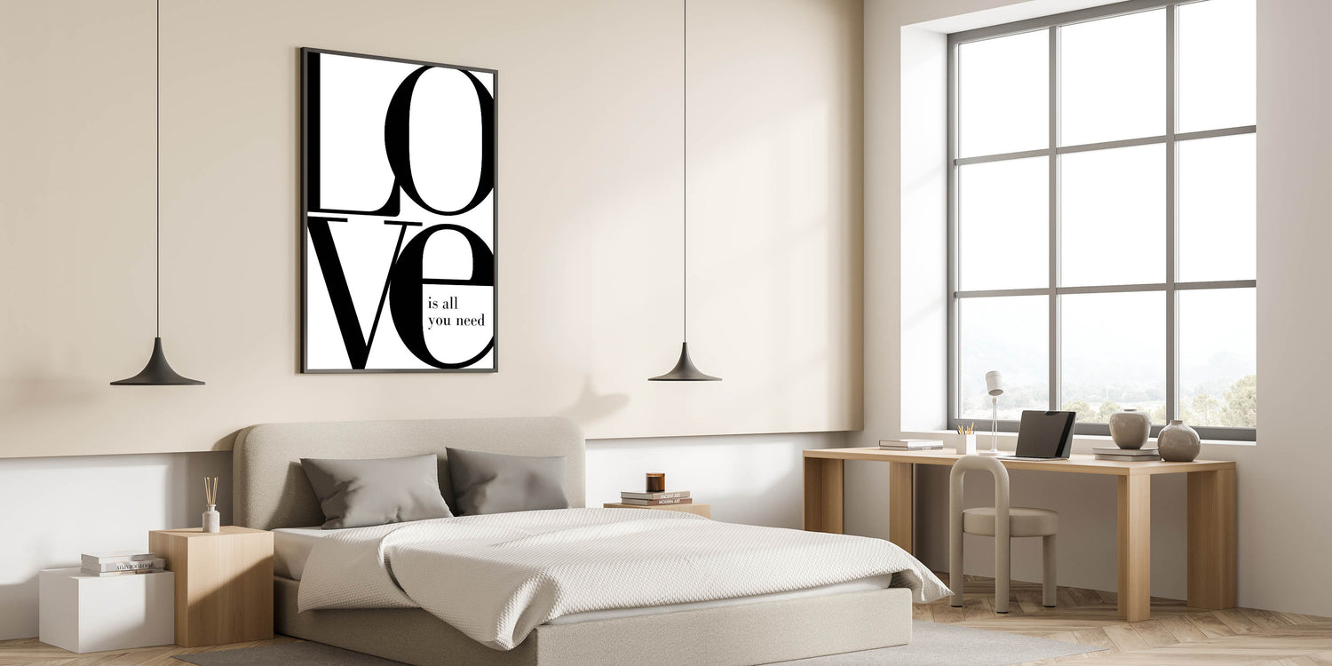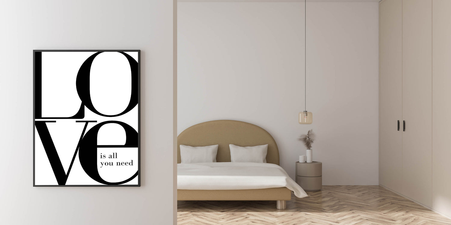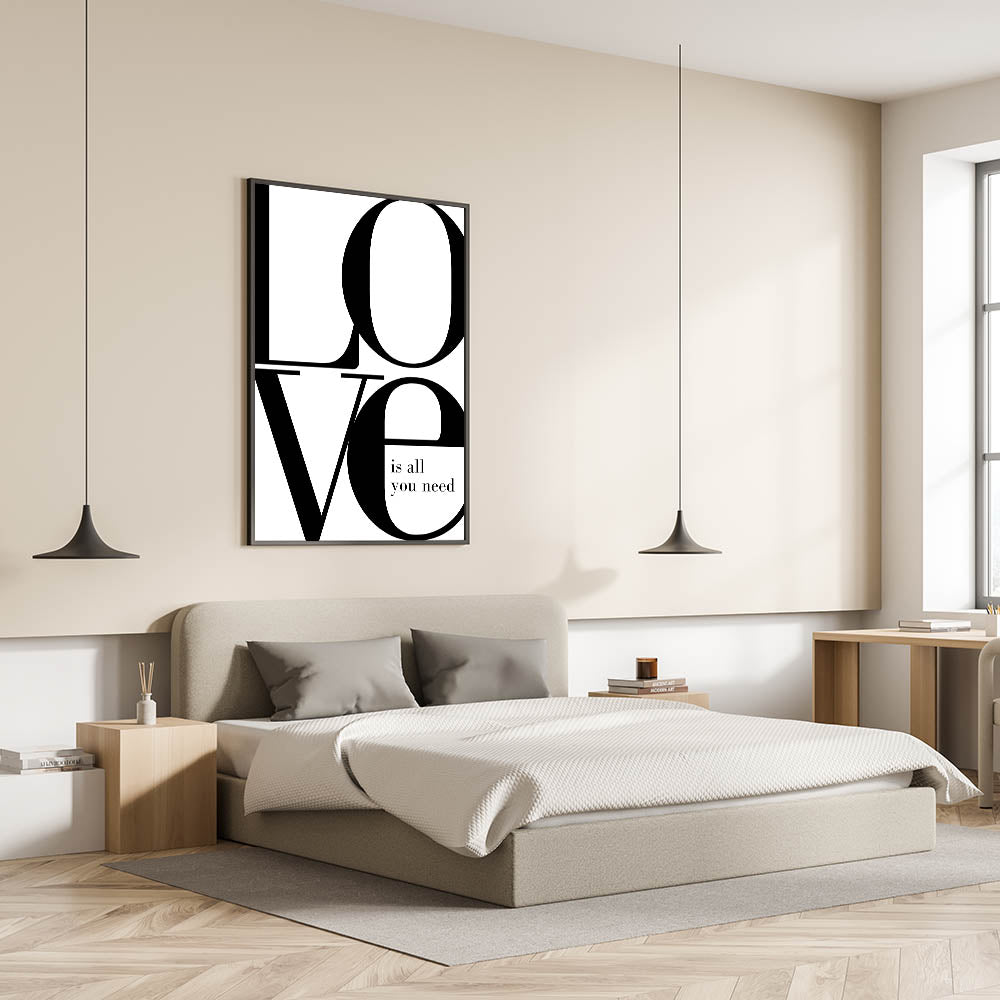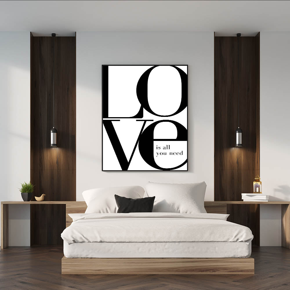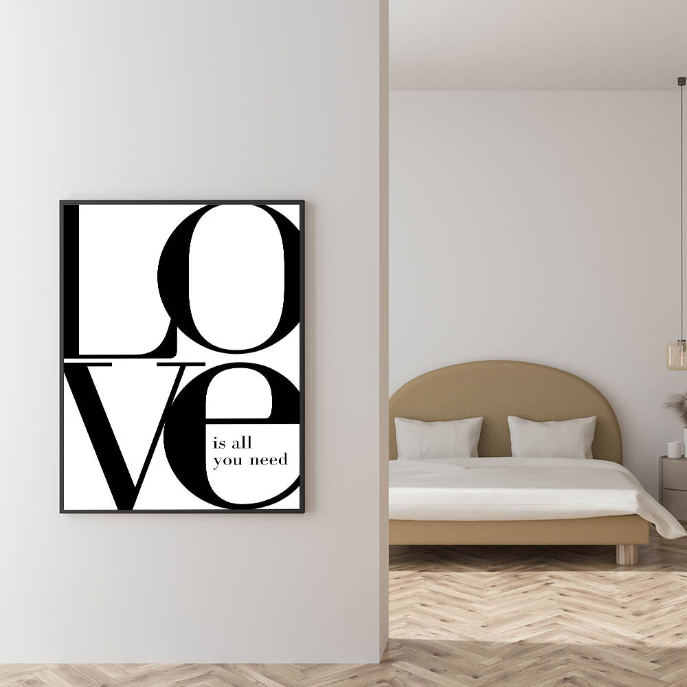 Elevate your space with our Modern Typography Wall Art featuring the powerful message, "LOVE is all you need." This minimalist design combines bold, artistic lettering with a sleek black-and-white palette, making it an ideal choice for contemporary home decor. Perfect for living rooms, bedrooms, or offices, this artwork adds a touch of sophistication and warmth.