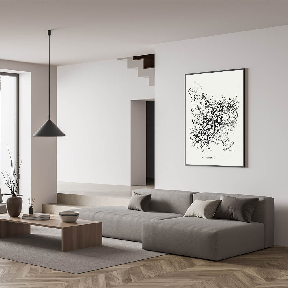 Celebrate the beauty of simplicity with the "Basket of Flowers" Modern Wall Art. This minimalist monochrome piece, inspired by Leo Gestel, features intricate black-and-white linework that captures the timeless charm of a floral arrangement. Its clean and elegant design is perfect for those who love minimalist modern decor and appreciate the subtleties of artistic expression.