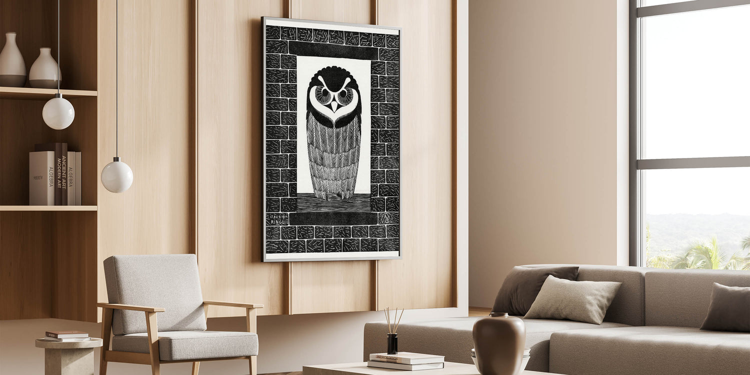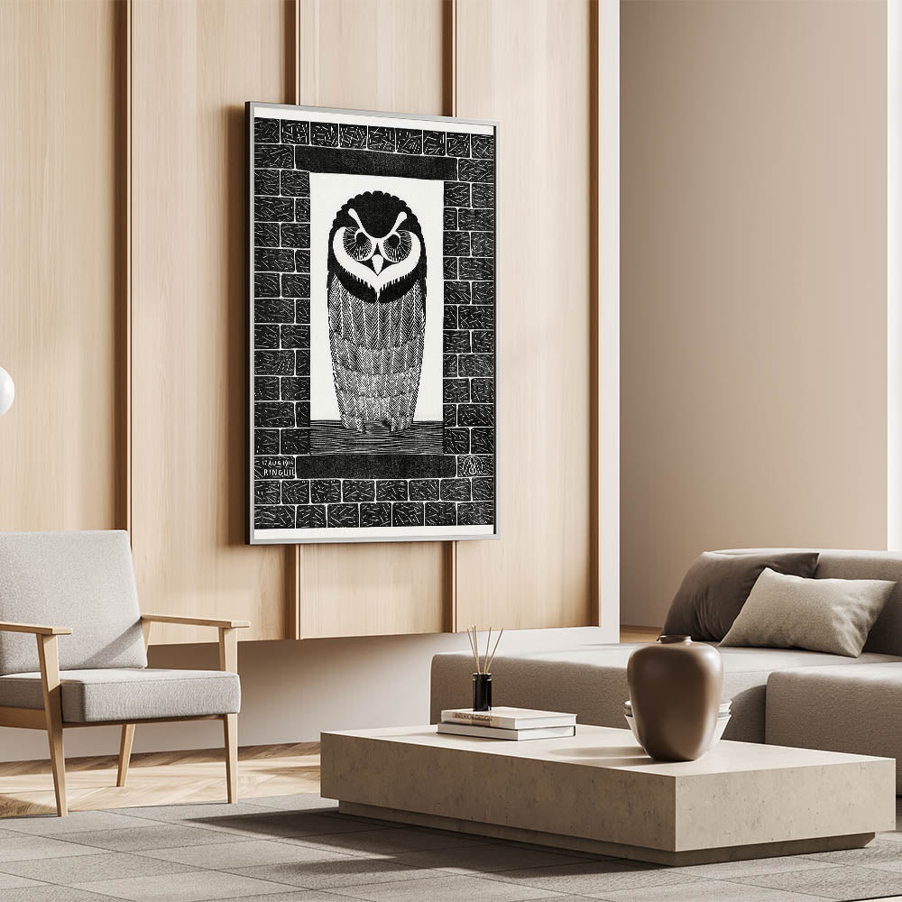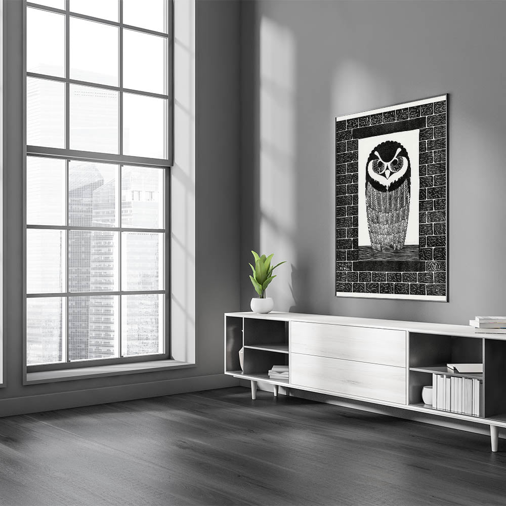 Modern Wall Art: Bold Owl Illustration in Black & White – Minimalist Decor