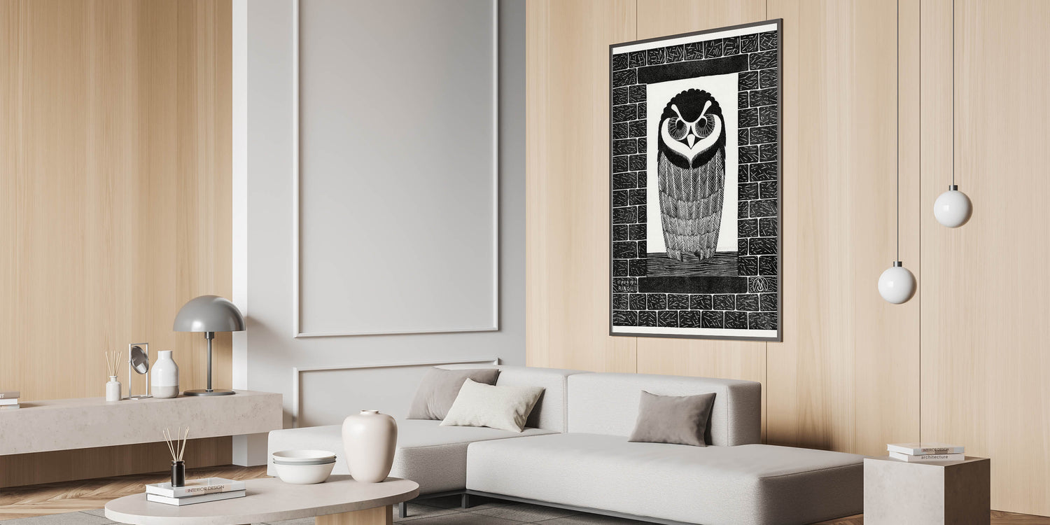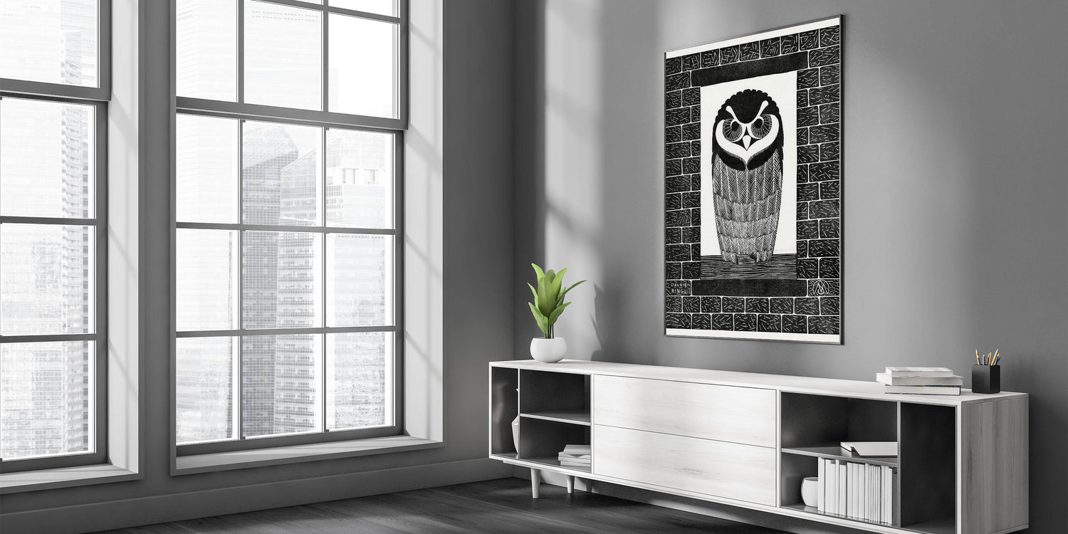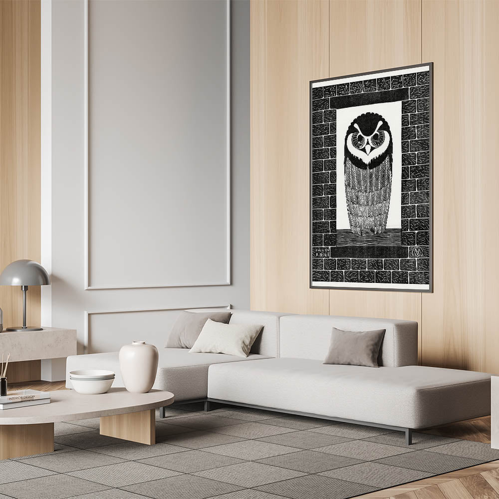 Modern Wall Art: Bold Owl Illustration in Black & White – Minimalist Decor