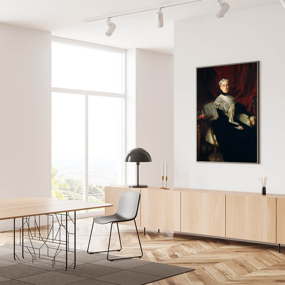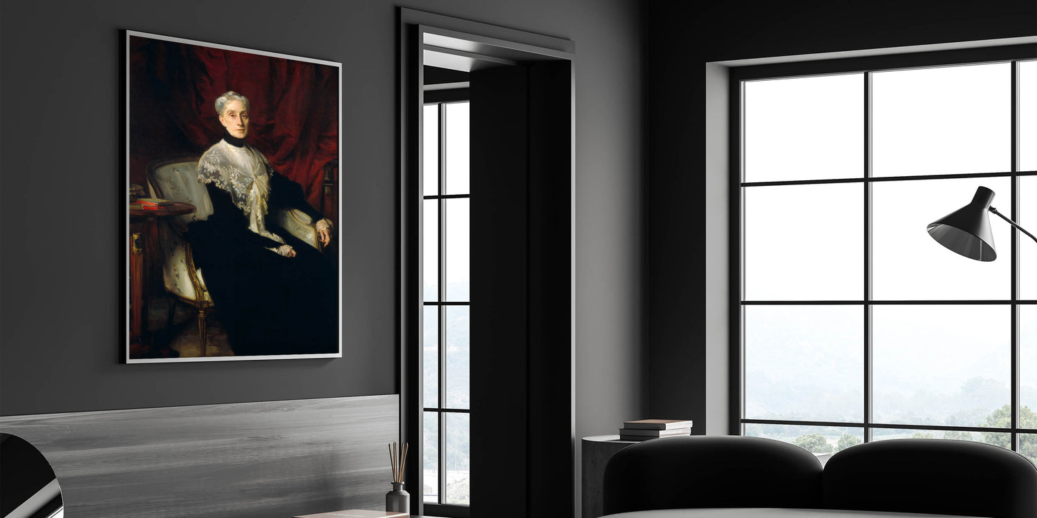 Elevate your space with the timeless elegance of "Ellen Peabody Endicott", a captivating portrait by John Singer Sargent. This stunning piece of modern wall art combines classic portraiture with refined detail, highlighting the poise and grace of its subject. The rich contrast of deep reds, blacks, and soft whites creates a luxurious composition, making it an ideal addition to contemporary art pieces or modern decor trends.