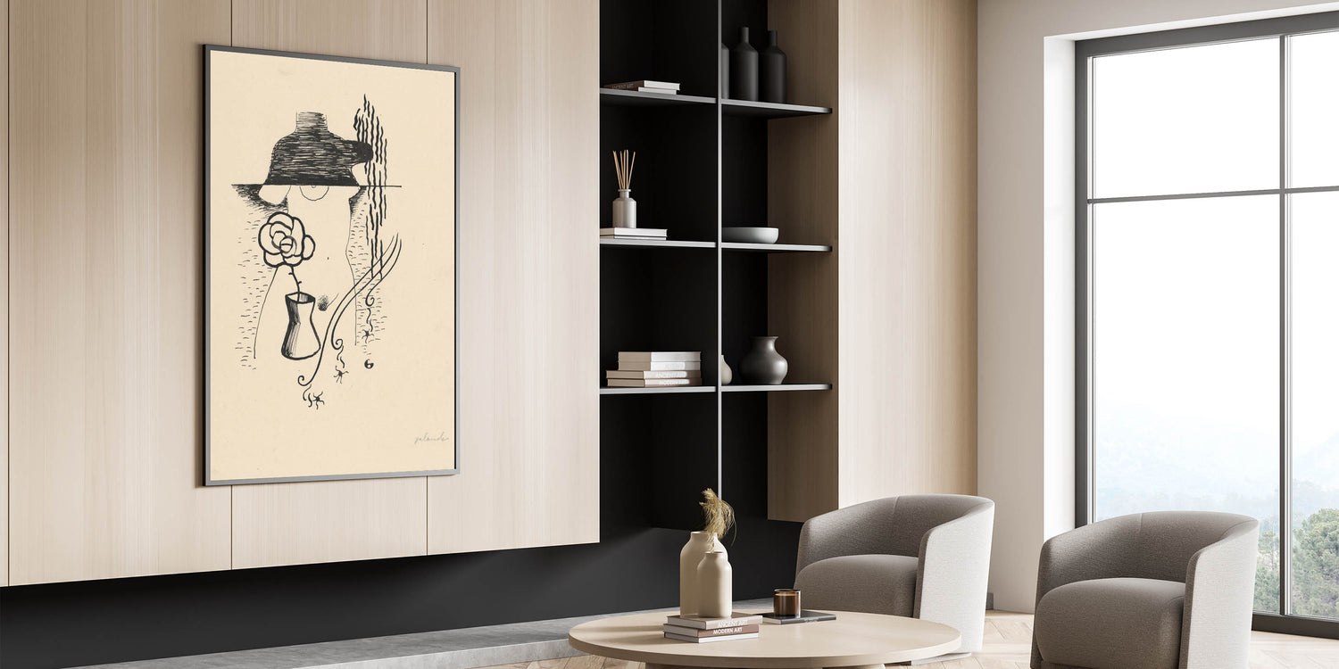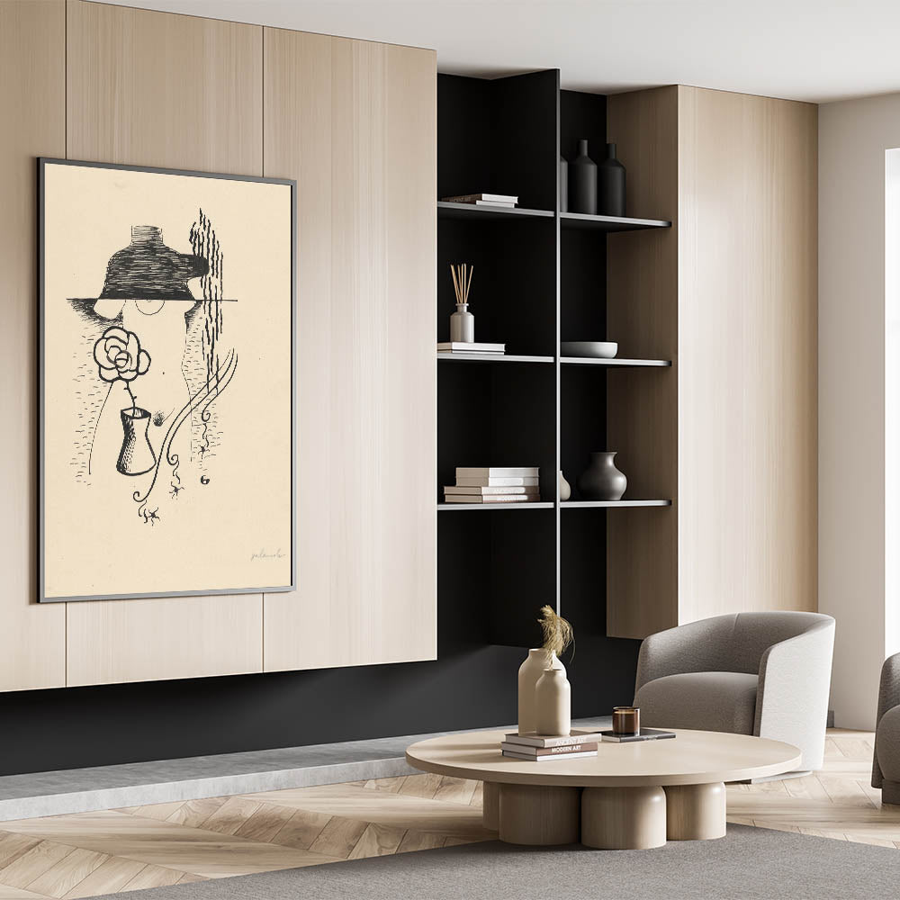 This artwork blends modern artistry with a poetic narrative, creating a space of calm and introspection. Add this captivating piece to your collection for a touch of minimalist charm.