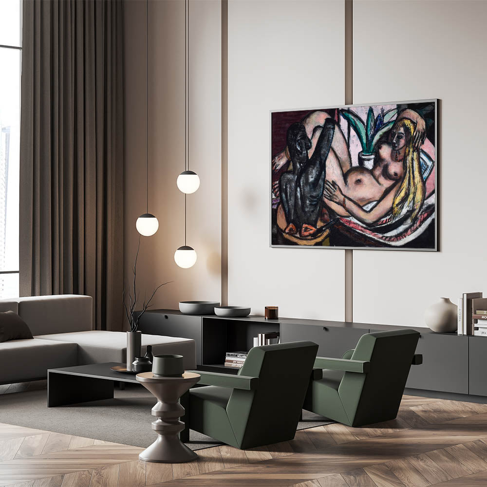 Transform your space with this evocative Modern Wall Art, a bold studio composition featuring a female nude alongside a striking sculpture. This artwork, characterized by expressive brushstrokes and dynamic contrasts, merges sensuality and artistry to create an impactful piece. Perfect for lovers of Contemporary Art Pieces, this design celebrates the human form while inviting deep contemplation, making it an ideal choice for Trendy Home Decor.