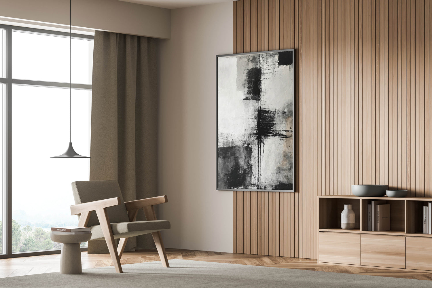 The neutral tones and raw textures make this artwork a versatile addition to any room. Its minimalist yet bold design adds a sense of depth and sophistication, making it a perfect choice for those who appreciate contemporary and industrial-style art.