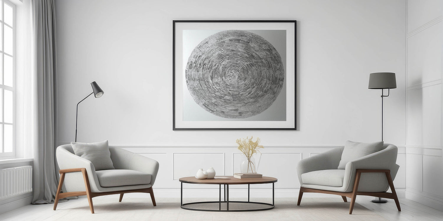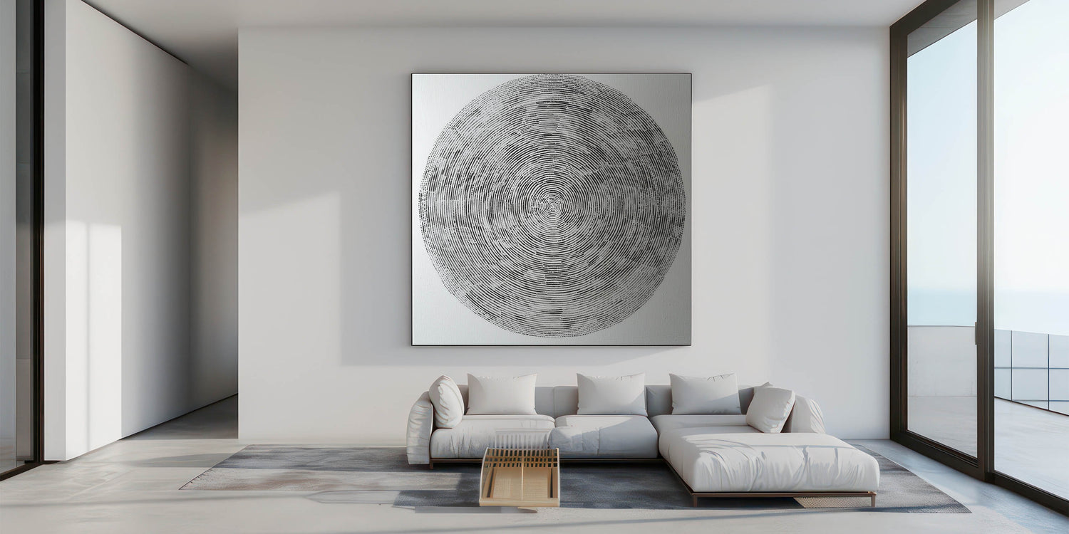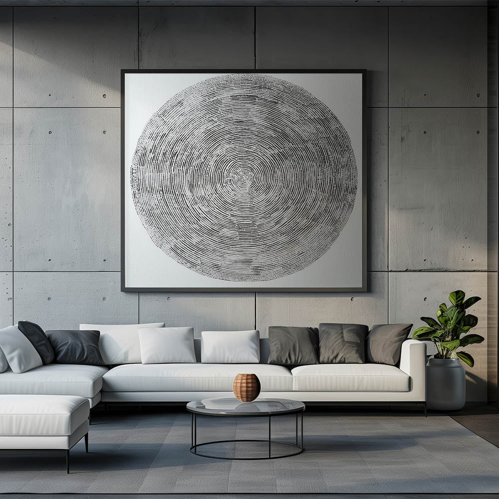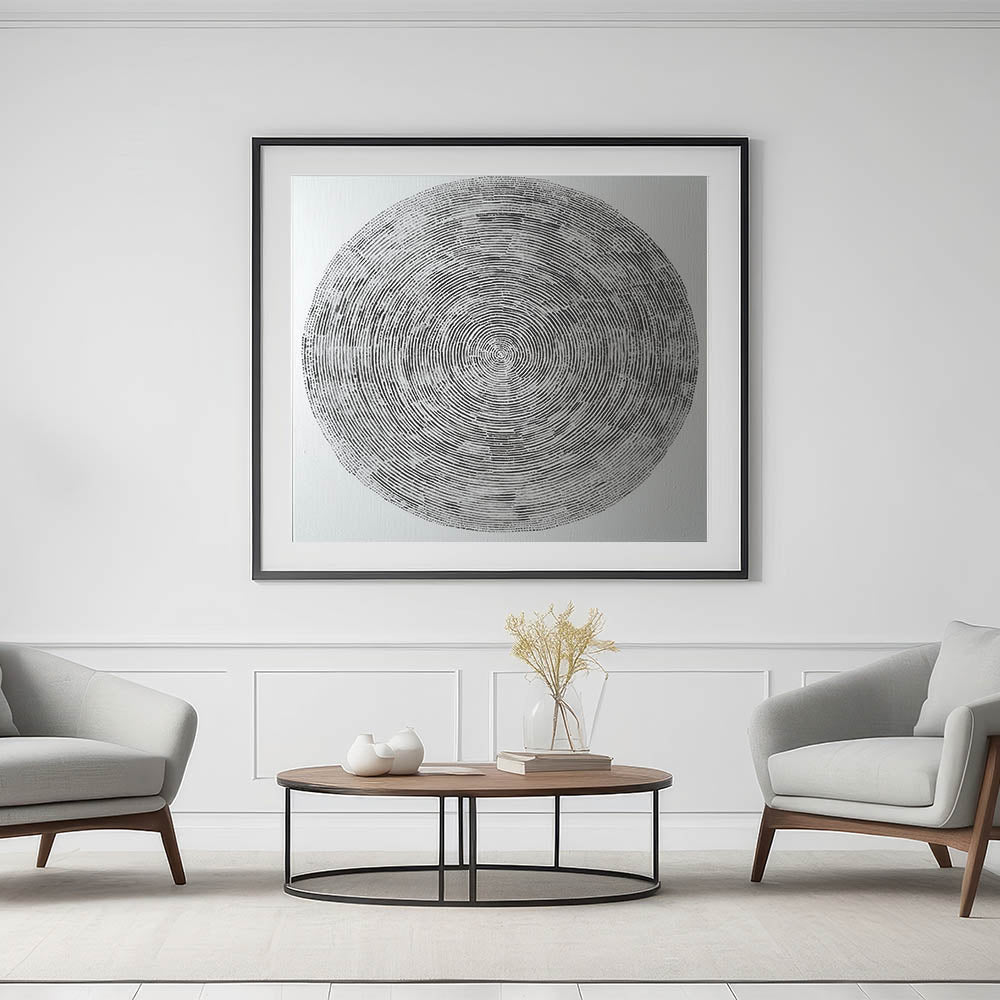 Add a touch of modern sophistication with this Monochrome Geometric Wall Art, featuring an intricate circular line pattern in black and white. This mesmerizing design draws the eye with its concentric layers, creating depth and texture. The minimalist color palette and precise geometry make this piece a timeless addition to contemporary and minimalist interiors.