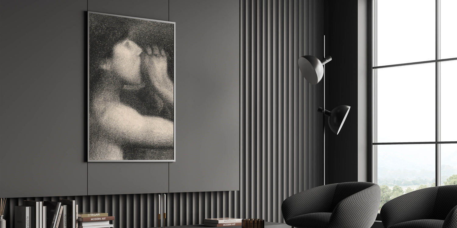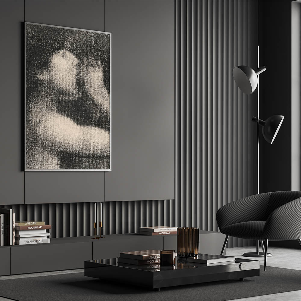 Add depth and intrigue to your decor with this monochromatic Pointillism artwork by Georges Seurat, Echo, Bathers at Asnières. This expressive piece showcases Seurat’s unique technique of using delicate dots and shading to evoke emotion and atmosphere. The soft, blurred effect of the figure captures a moment of introspection and stillness, making it perfect for art lovers who appreciate subtlety and texture. Ideal for minimalist and modern interiors, this artwork brings a timeless, sophisticated appeal to any room.
