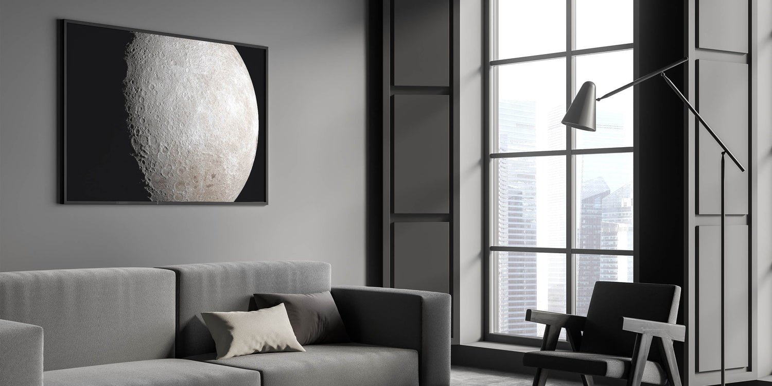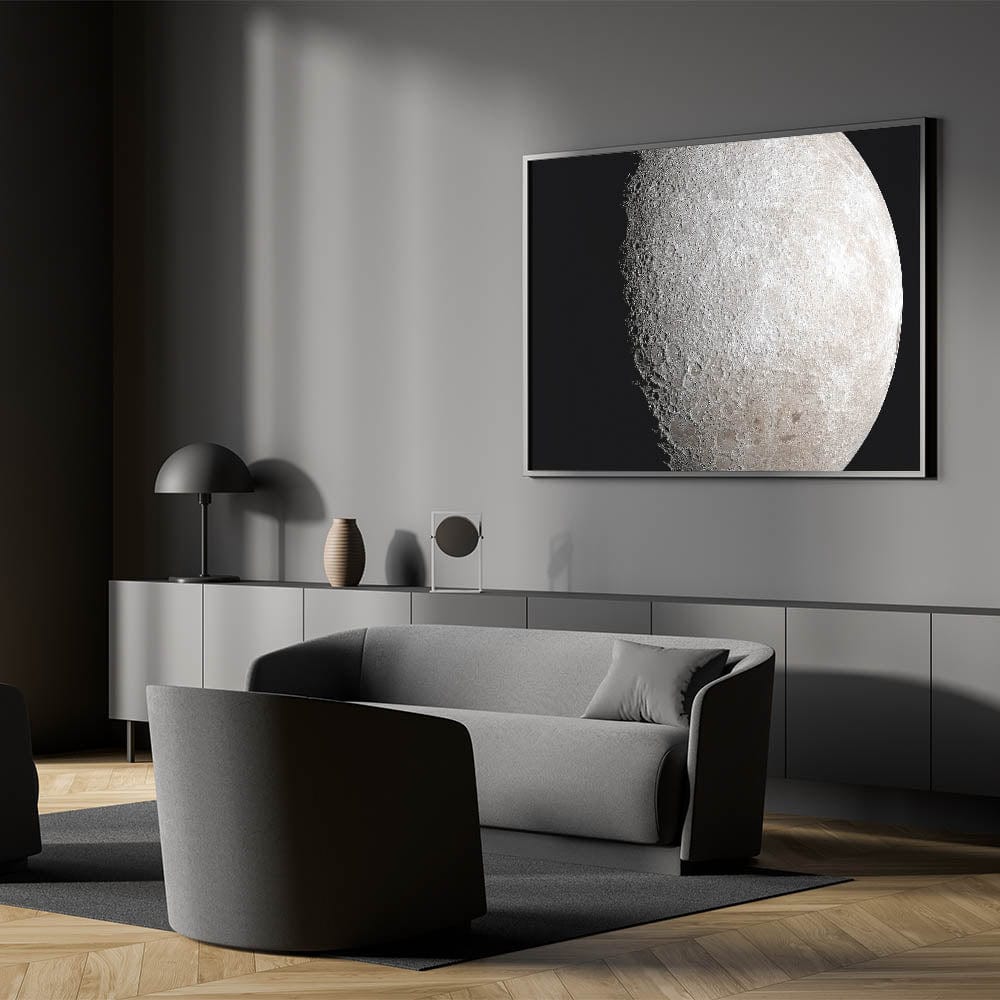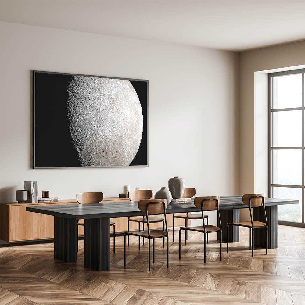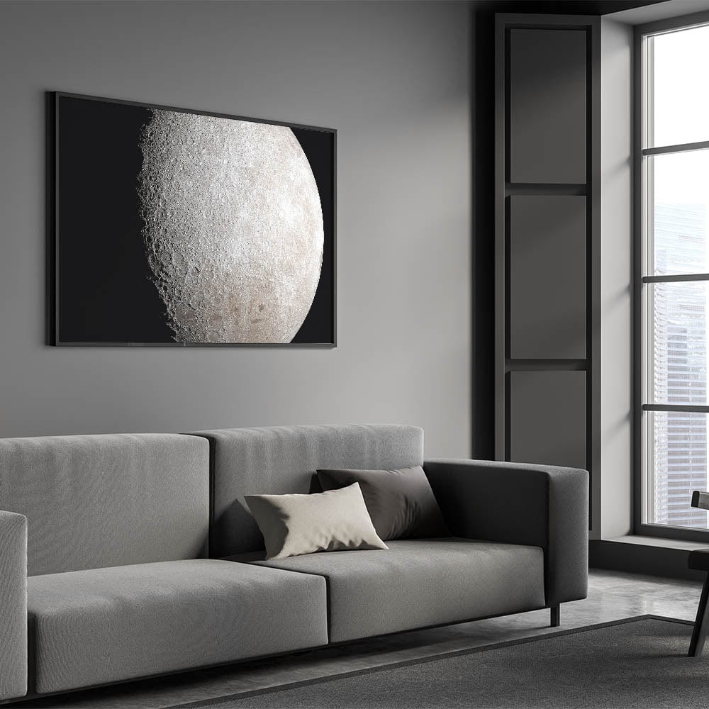 Bring the magnificence of the lunar surface into your space with this captivating wall art featuring the moon's detailed craters and textures. Perfect for enthusiasts of space exploration, this piece captures the wonder of NASA missions and celebrates humanity’s ongoing quest for knowledge beyond Earth. Its striking contrast of light and shadow adds depth and intrigue, making it a standout addition to any room.