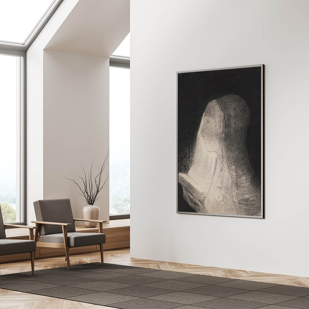 Immerse yourself in the mystique of this haunting black and white artwork, "The Book of Light" by Odilon Redon. Featuring a solitary figure illuminated by a soft glow, this piece evokes a sense of quiet contemplation and mystery. The subtle contrasts and delicate details draw viewers into its ethereal atmosphere, making it a captivating addition to any art collection.